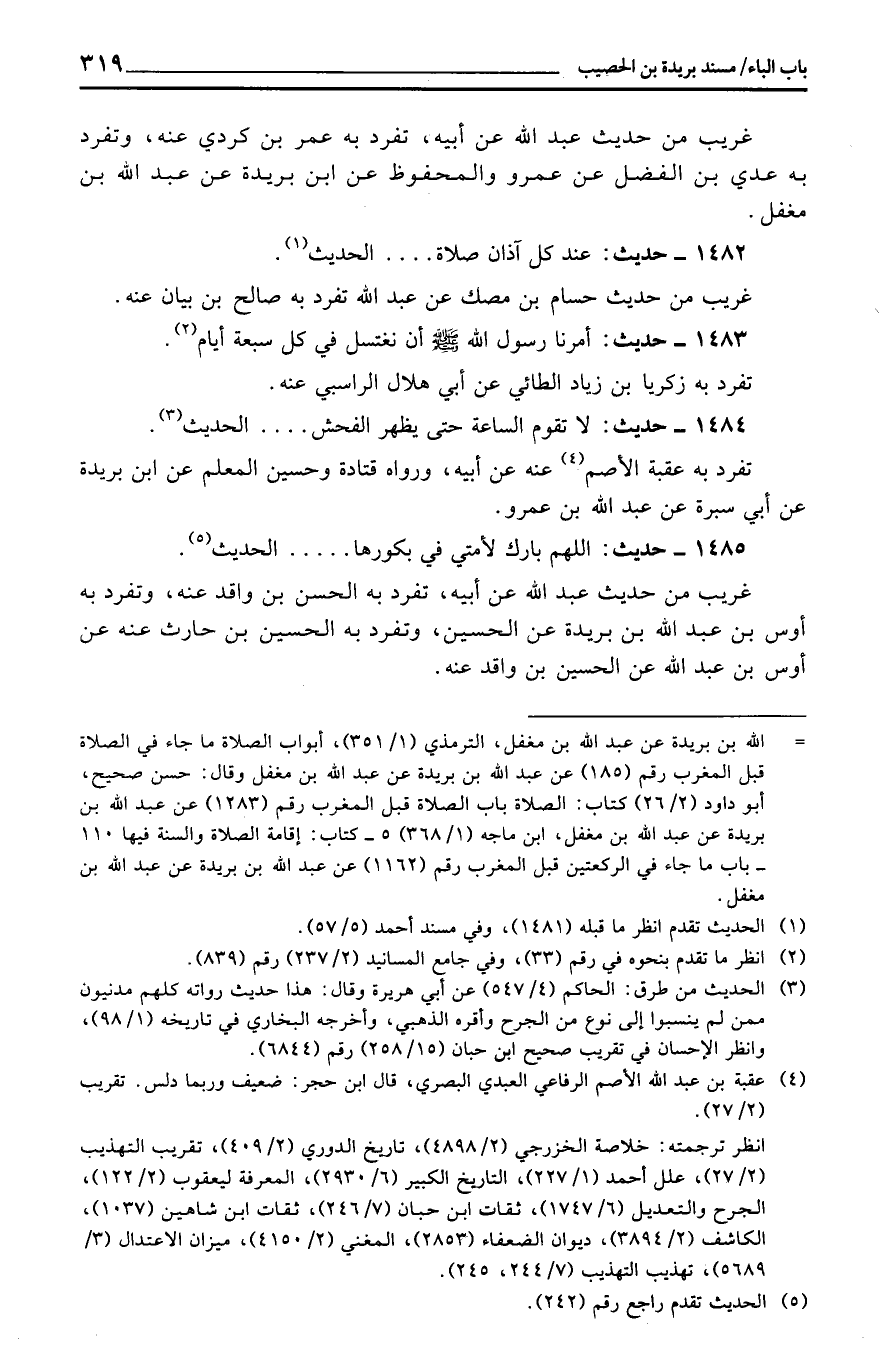 تفرد بِهِ عقبَة الْأَصَم عَنهُ عَن أَبِيه، وَرَوَاهُ قَتَادَة وحسين الْمعلم عَن ابْن بُرَيْدَة عَن أبي سُبْرَة عَن عبد الله بن عَمْرو.