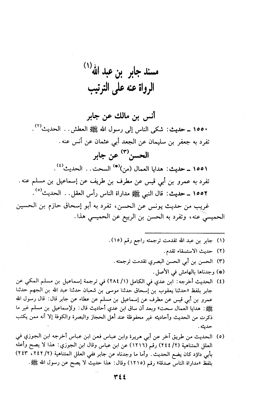 مُسْند جَابر بن عبد الله الروَاة عَنهُ على التَّرْتِيب