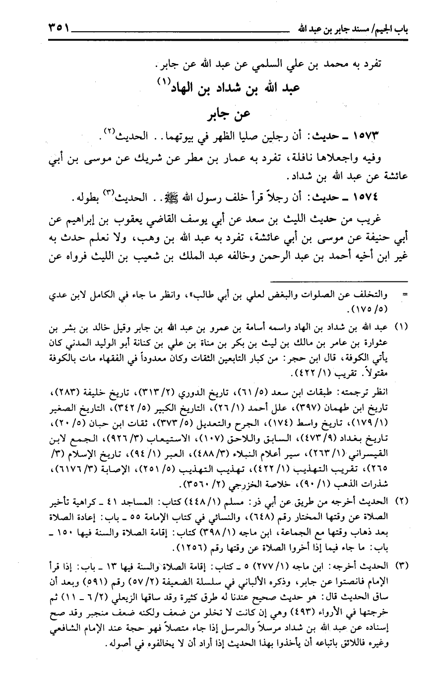 عبد الله بن شَدَّاد بن الْهَاد عَن جَابر