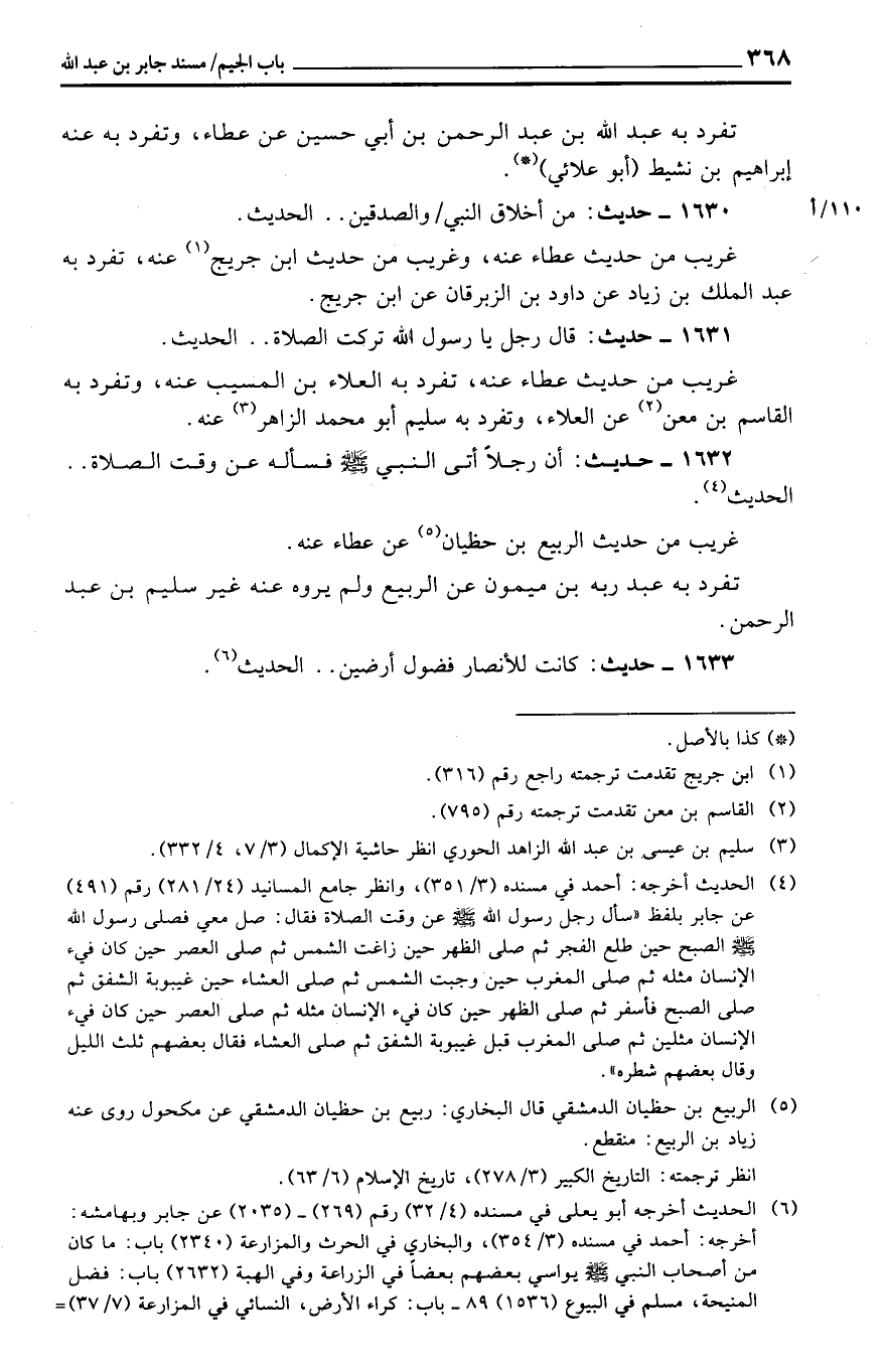 تفرد بِهِ عبد الله بن عبد الرَّحْمَن بن أبي حُسَيْن عَن عَطاء، وَتفرد بِهِ عَنهُ إِبْرَاهِيم بن نشيط (أَبُو علائي) .