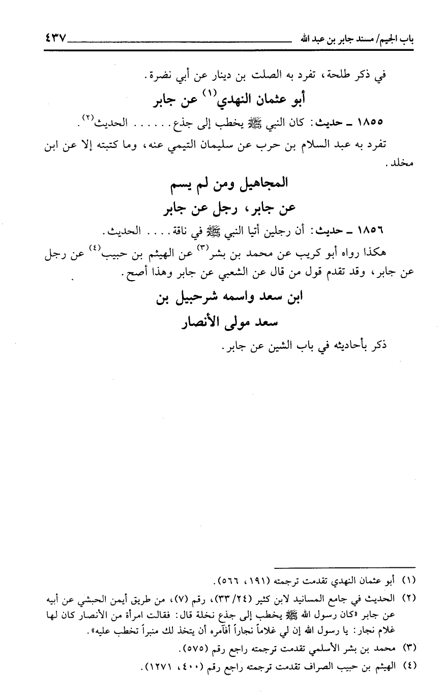 المجاهيل وَمن لم يسم عَن جَابر، رجل عَن جَابر