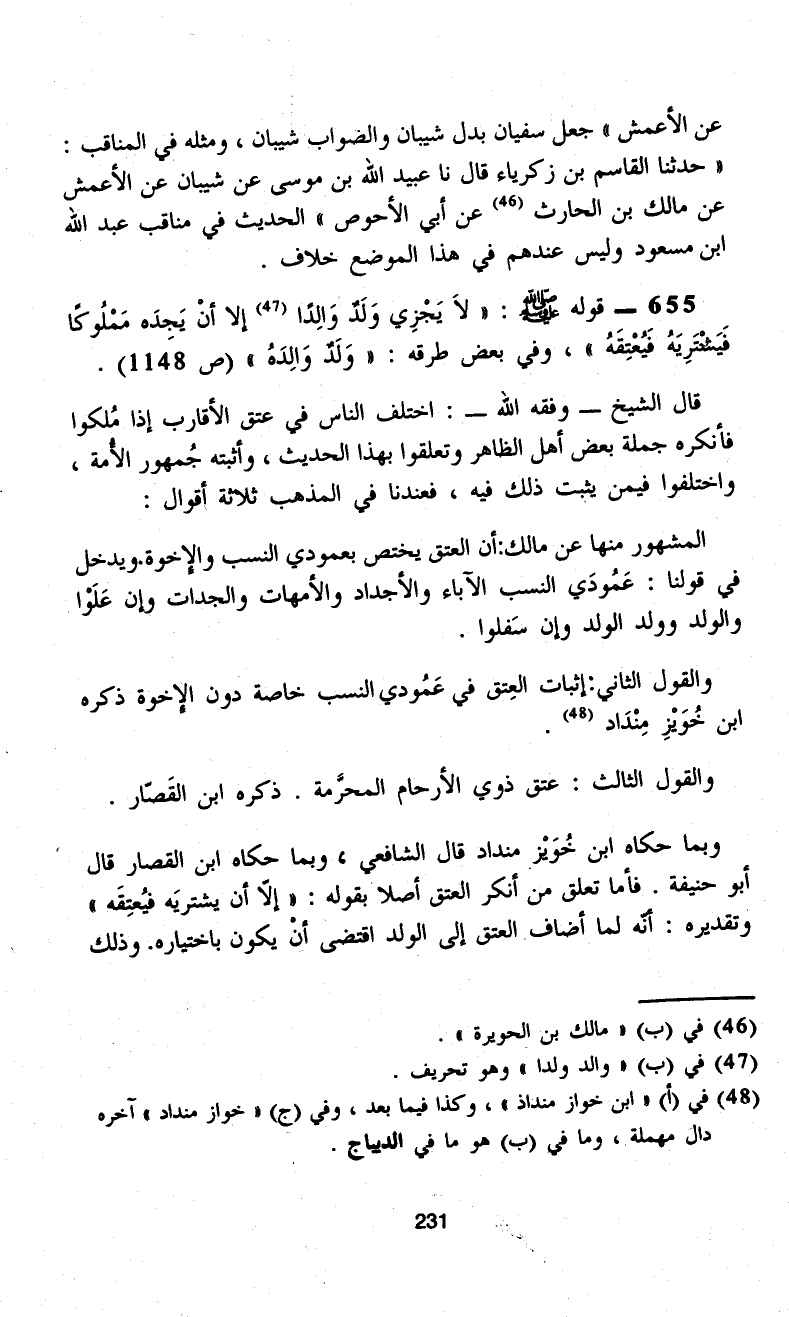 قال الشيخ -وفقه الله-: اختلف الناس في عتق الأقارب إذا مُلكوا فأنكره جملة بعض أهل الظاهر وتعلقوا بهذا الحديث، وأثبته جُمهور الأُمة، واختلفوا فيمن يثبت ذلك فيه، فعندنا في المذهب ثلاثة أقوال: