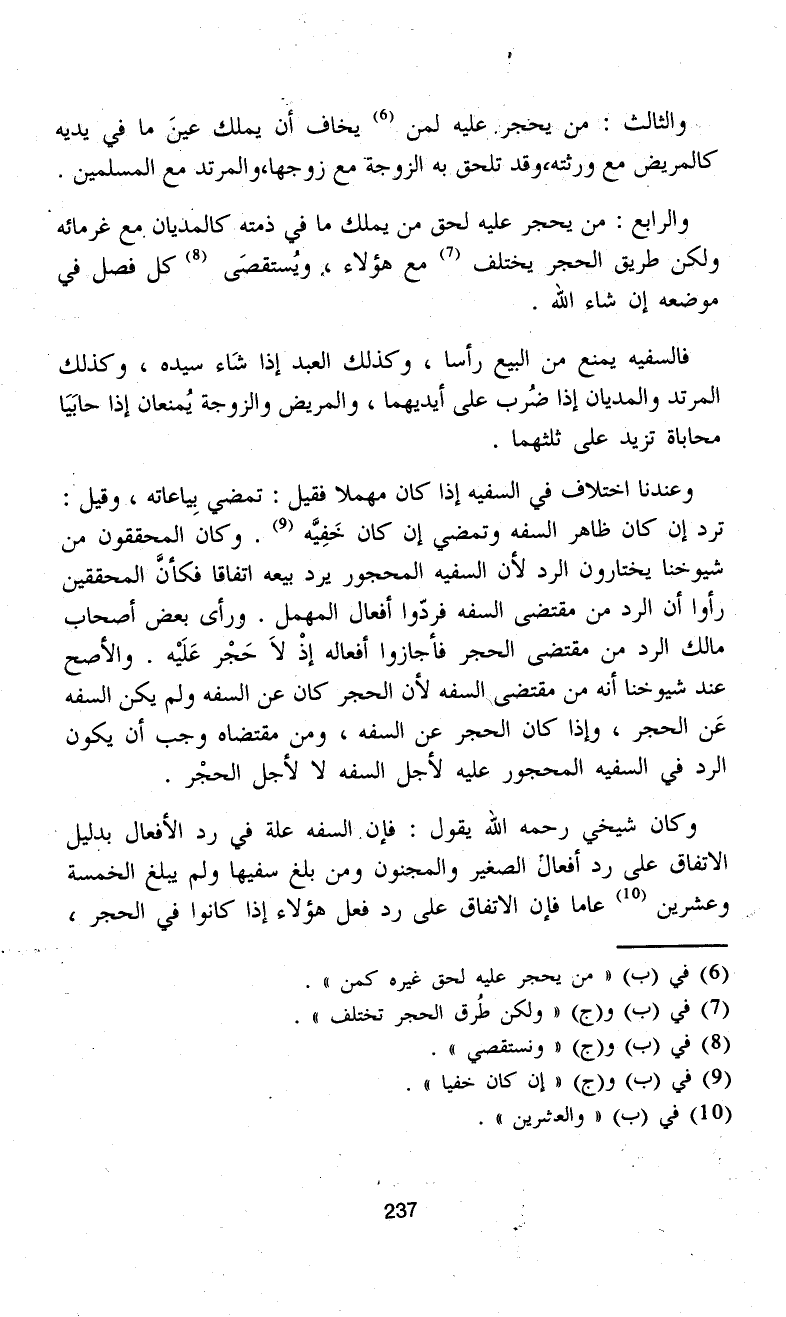 والرابع: من يحجر عليه لحق من يملك ما في ذمته كالمديان مع غرمائه ولكن طريق الحجر يختلف (¬7) مع هؤلاء، ويُستقصَى (¬8) كل فصل في موضعه إن شاء الله.
