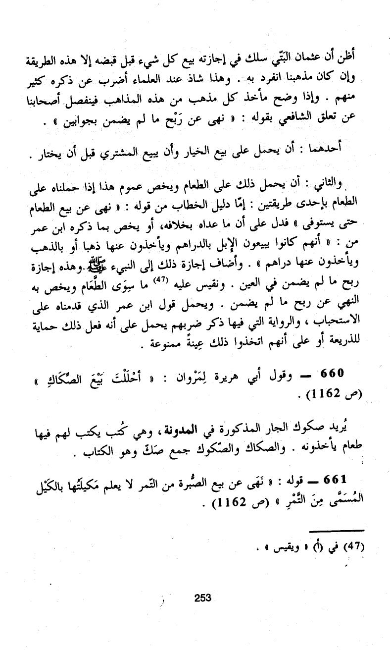 660 - وقول أبي هريرة لِمَرْوان: "أحْلَلْتَ بَيْعَ الصِّكَاكِ" (ص 1162).