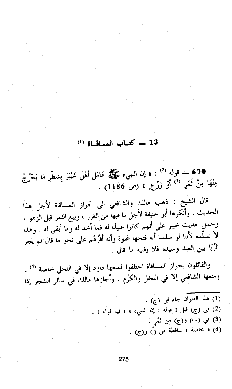 670 - قوله (¬2): "إن النبيء - صلى الله عليه وسلم - عَامَل أهْلَ خَيْبَرَ بشطْرِ مَا يَخْرُجُ مِنْهَا مِنْ ثَمَرٍ (¬3) أوْ زَرْعٍ" (ص 1186).