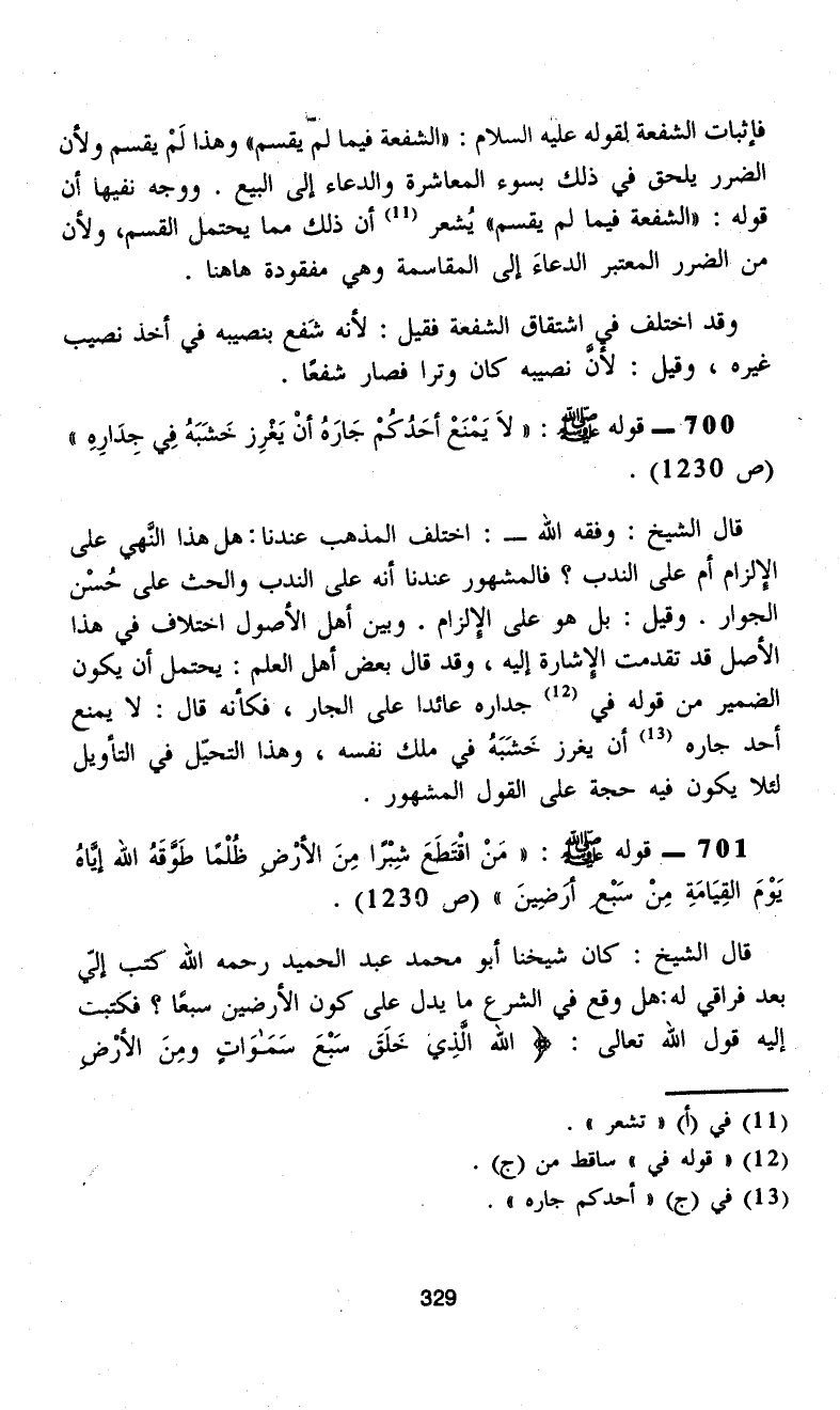 700 - قوله - صلى الله عليه وسلم -: "لاَ يَمْنَعْ أحَدُكُمْ جَارَهُ أنْ يَغْرِز خَشَبَهُ فِي جِدَارِهِ" (ص 1230).