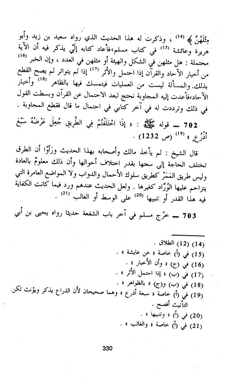 702 - قوله - صلى الله عليه وسلم -: "إذا اخْتَلَفْتُمْ فِي الطَّريقِ جُعِلَ عَرْضُهُ سَبْعَ أذْرُعٍ " (¬19) (ص 1232).