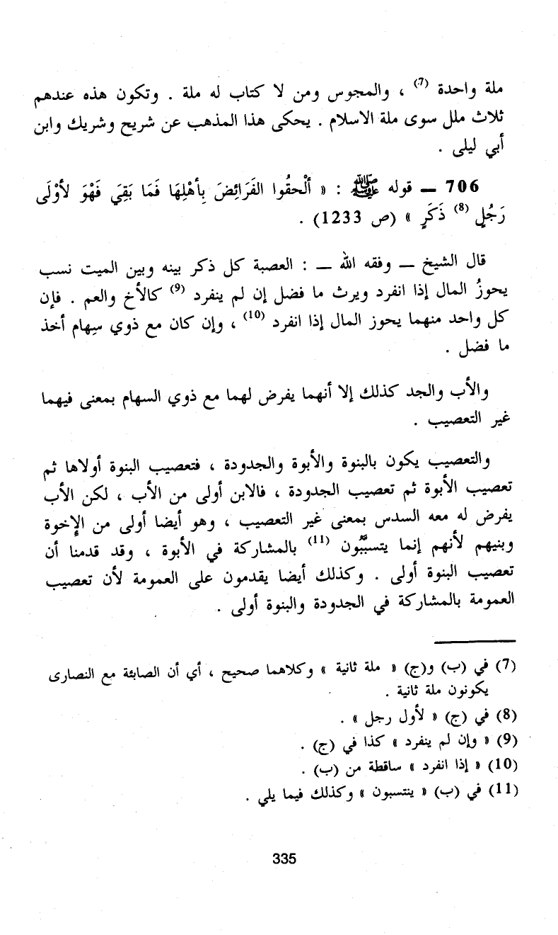 706 - قوله - صلى الله عليه وسلم -: "ألْحقُوا الفَرَائِضَ بِأهْلِهَا فَمَا بَقِيَ فَهْوَ لأوْلَى رَجُلٍ (¬8) ذَكَرٍ" (ص 1233).