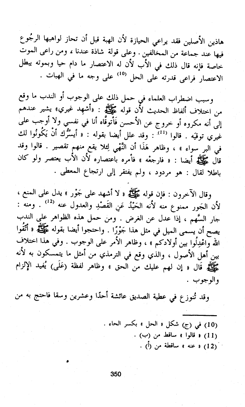 وقال الآخرون: فإن قوله - صلى الله عليه وسلم - "لا أشهد على جَوْر" يدل على المنع، لأن الجَور ممنوع منه لأنه الحَيْدُ عَنِ القَصْدِ والعدول عنه (¬12). ومنه: جار السَّهم، إذا عدل عن الغرض. ومن حمل هذه الظواهر على الندب يصح أن يسمى الميل في مثل هذا جَوْرًا. واحتجوا أيضاً بقوله - صلى الله عليه وسلم - "أتّقُوا الله واعْدِلُوا بين أولادكم"، وظاهر الأمر على الوجوب. وفي هذا اختلاف بين أهل الأصول، والذي وقع في الترمذي من أمثل ما يتمسكون به لأنه - صلى الله عليه وسلم - قَال "إن لهم عليك من الحق" وظاهر لفظة (عَلَى) يُفيد الإِلزام والوجوب.