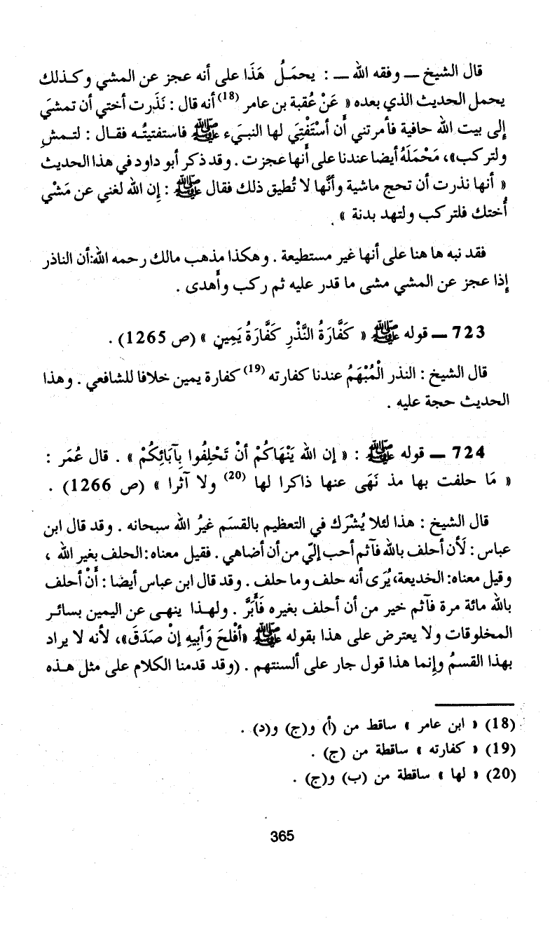 723 - قوله - صلى الله عليه وسلم - "كَفَّارَةُ النَّذْرِ كَفَّارَةُ يَمِين" (ص 1265).