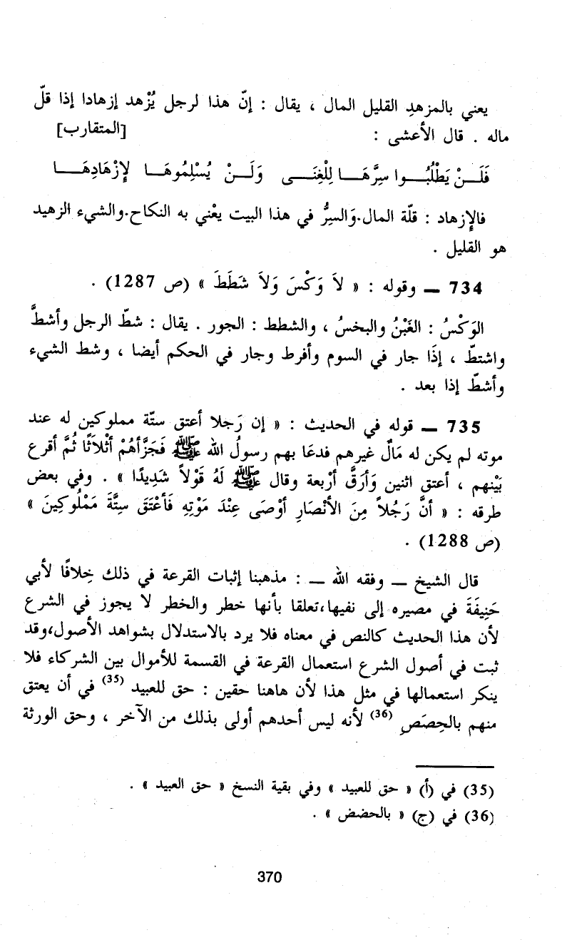 734 - وقوله: "لاَ وَكْسَ وَلاَ شَطَطَ" (ص 1287).