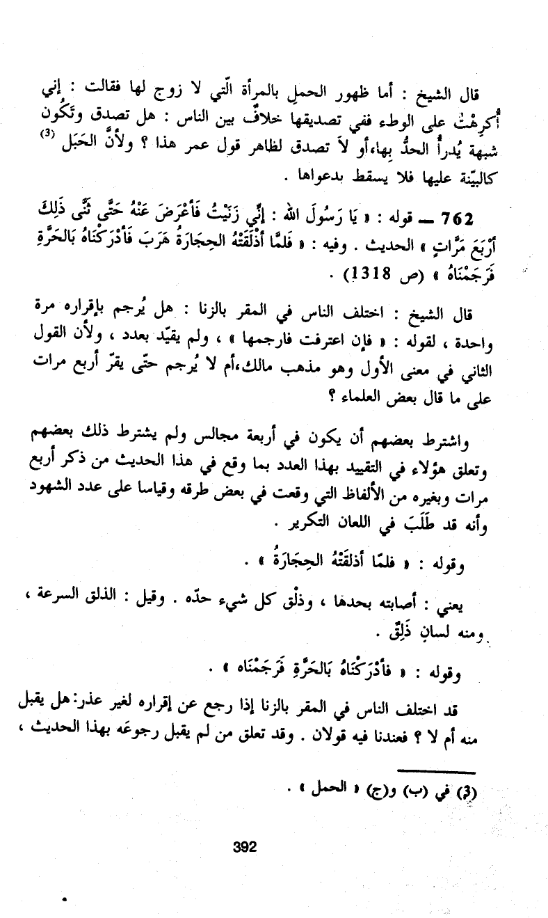 762 - قوله: "يَا رَسُولَ الله: إنَّي زَنَيْتُ فَأعْرَضَ عَنْهُ حَتَّى ثَنَّى ذَلِكَ أرْبَعَ مَرَّاتٍ" الحديث. وفيه: "فَلمَّا أذْلَقَتْهُ الحِجَارَةُ هَرَبَ فَأدْرَكْنَاهُ بَالحَرَّةِ فَرَجَمْنَاهُ" (ص 1318).