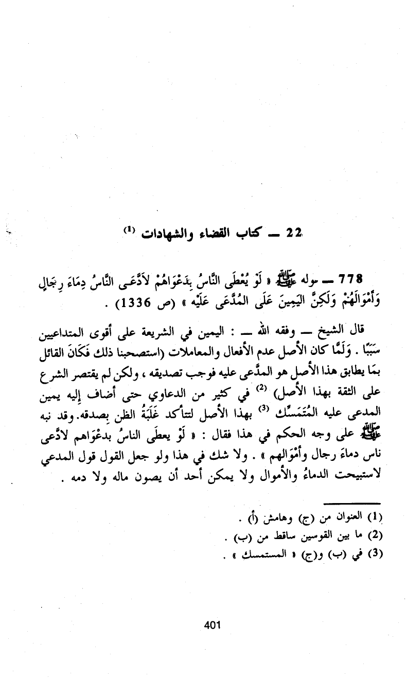 778 - قوله - صلى الله عليه وسلم -"لَوْ يُعْطَى الناسُ بَدعْوَاهُمْ لاَدَّعى النَّاسُ دِمَاءَ رِجَالٍ وَأمْوَالَهُمْ وَلَكِنَّ اليَمِينَ عَلَى المُدَّعَى عَلَيْه" (ص 1336).