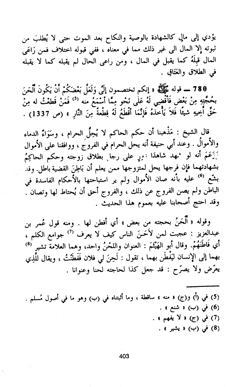 780 - قوله - صلى الله عليه وسلم -: "إنكم تختصمون إلَىَّ وَلَعَلَّ بَعْضَكُمْ أَنْ يَكُونَ أَلْحَنَ بحُجَّتِهِ مِنْ بَعْض فَأقْضِي لَهُ عَلى نَحْو مِمَّا أسْمَعُ منه (¬5) فَمَنْ قَطعْتُ له مِنْ حَقِّ أخِيهِ شيئًا فَلاَ يَأْخذهُ فَإنَّمَا أقْطعُ لَهُ قِطْعةً مِنَ النَّارِ" (ص 1337).
