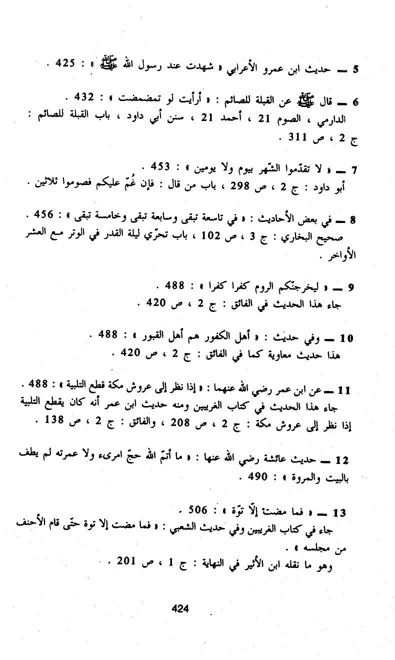 5 - حديث ابن عمرو الأعرابي "شهدت عند رسول الله - صلى الله عليه وسلم -": 425.