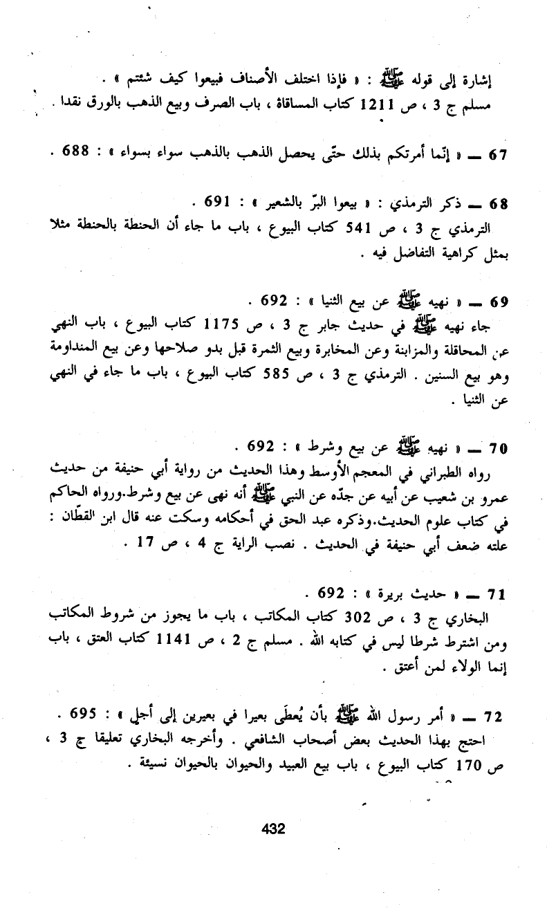 67 - "إنّما أمرتكم بذلك حتّى يحصل الذهب بالذهب سواء بسواء": 688.