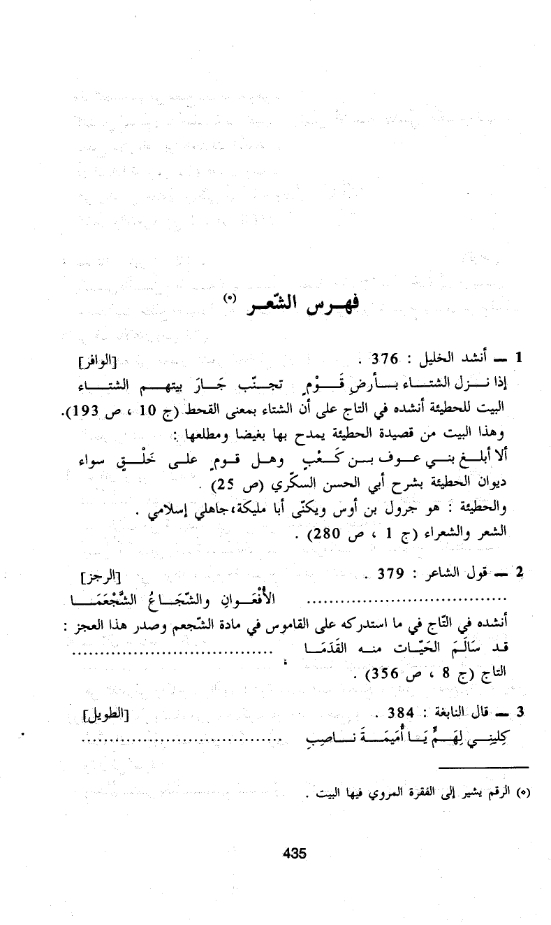 (*) الرقم يشير إلى الفقرة المروي فيها البيت.