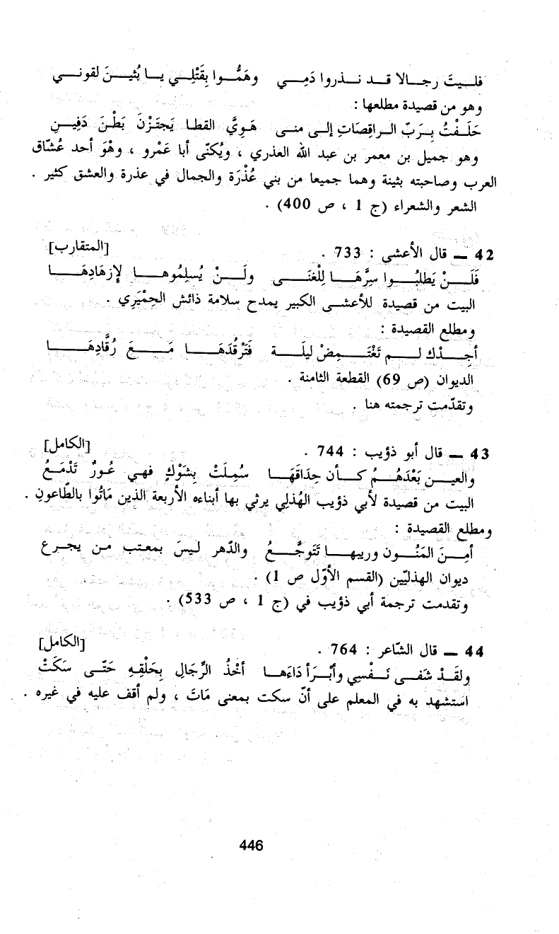 43 - قال أبو ذؤيب: 744. [الكامل]