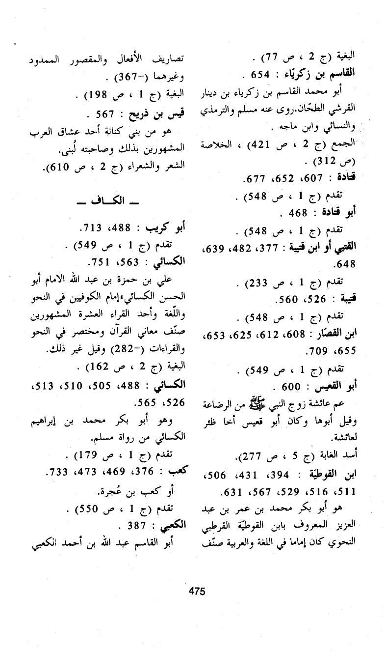 الكسائي: 488، 505، 510، 513، 526، 565.