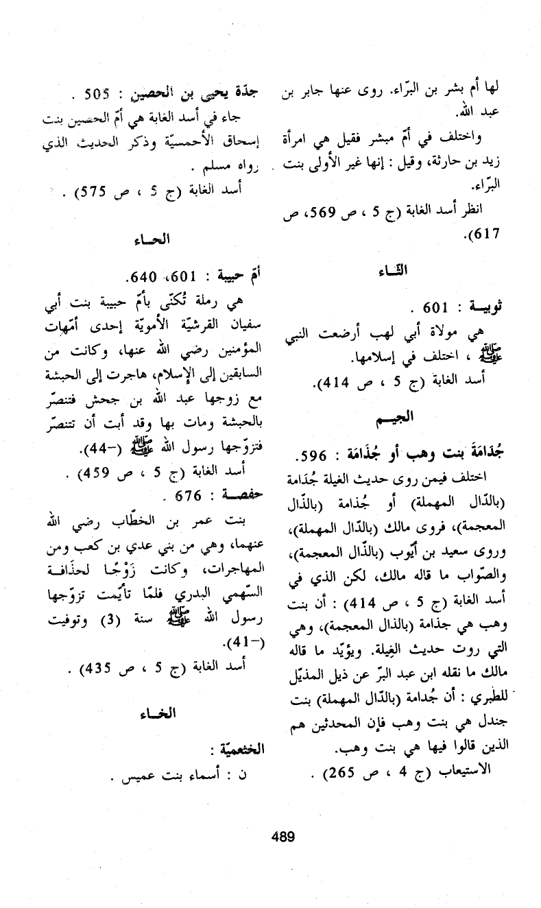 جُدَامَةَ بنت وهب أو جُذَامَة: 596.