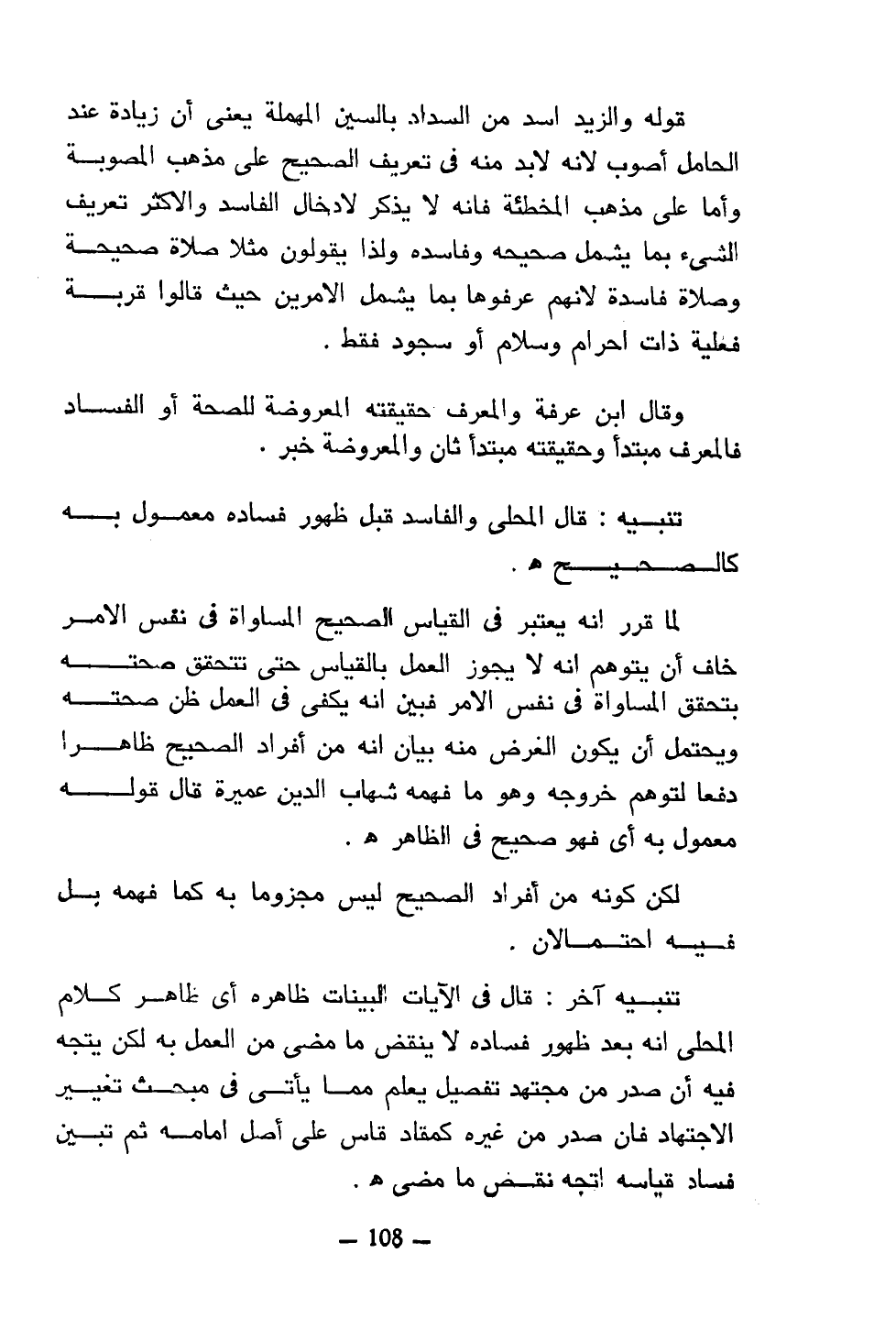 تنبيه: قال المحلى والفاسد قبل ظهور فساده معمول به كالصحيح هـ.
