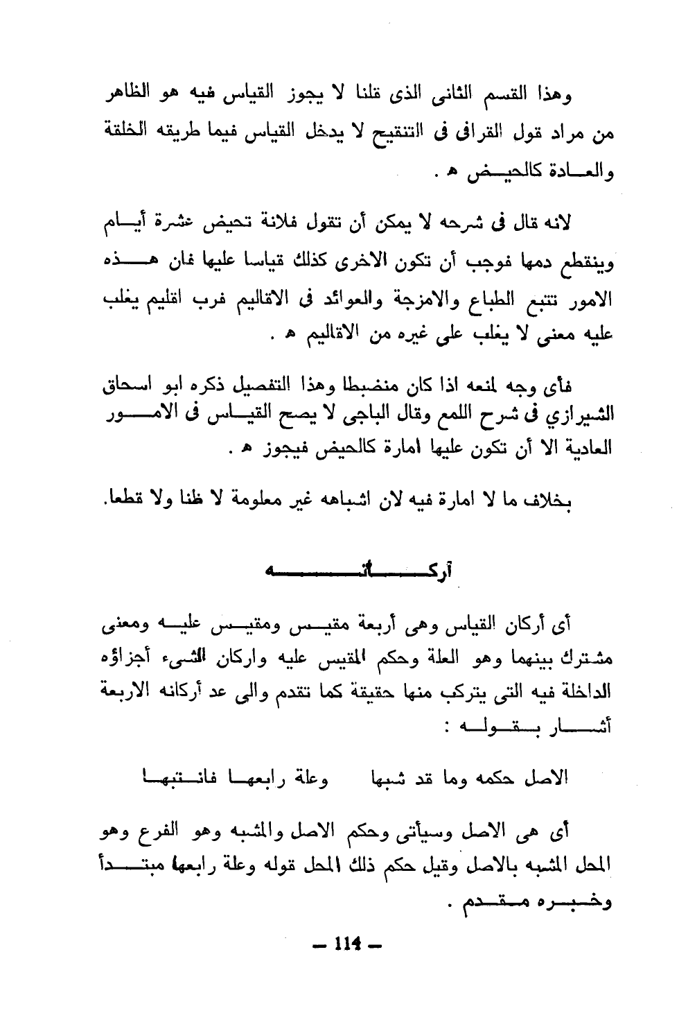 وهذا القسم الثاني الذي قلنا لا يجوز القياس فيه هو الظاهر من مراد قول القرافي في التنقيح لا يدخل القياس فيما طريقه الخلقة والعادة كالحيض هـ.