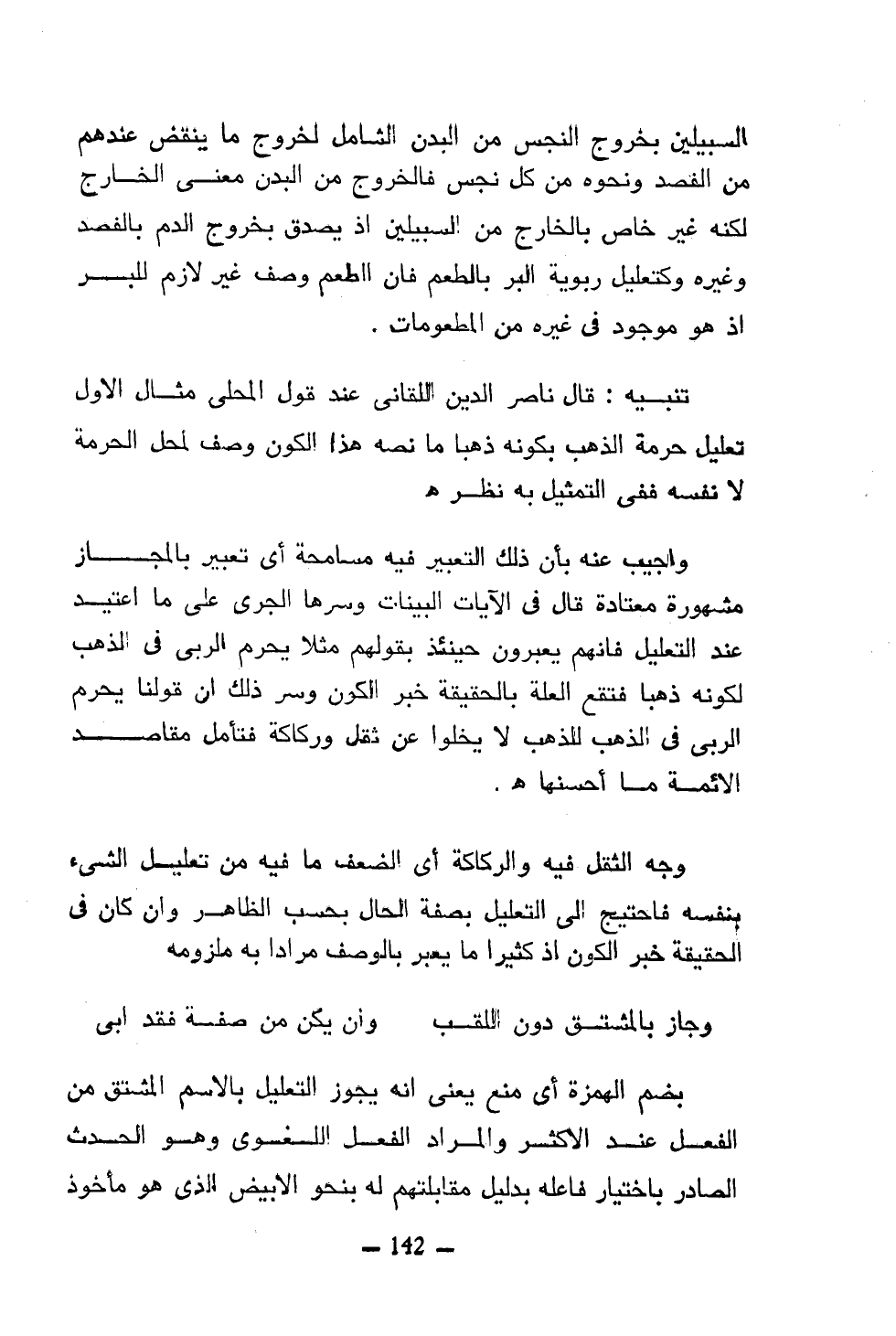 تنبيه: قال ناصر الدين اللقائي عند قول المحلي مثال الأول تعليل حرمة الذهب بكونه ذهبا ما نصه هذا الكون وصف لمحل الحرمة لا نفسه ففي التمثيل به نظر هـ