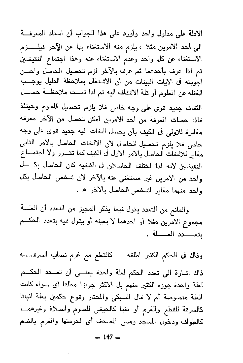 والمانع من التعدد يقول فيما يذكر المجيز من التعدد أن العلة مجموع الأمرين مثلا أو أحدهما لا بعينه أو يقول فيه بتعدد الحكم بتعدد العلة.