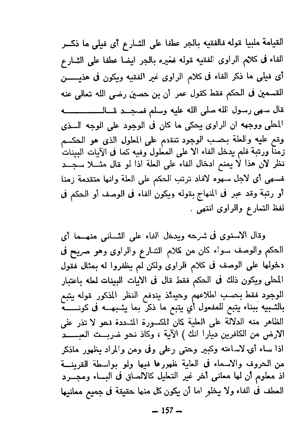 القيامة ملبيا قوله فالفقيه بالجر عطفا على الشارع أي فيلي ما ذكر الفاء في كلام الراوي الفقيه قوله فغيره بالجر أيضا عطفا على الشارع أي فيلي ما ذكر الفاء في كلام الراوي غير الفقيه ويكون في هذين القسمين في الحكم فقط كقول عمر ابن حصين رضي الله تعالى عنه قال سهى رسول الله صلى الله عليه وسلم فسجد قاله المحلى ووجهه إن الراوي يحكى ما كان في الوجود على الوجه الذي وقع عليه والعلة بحسب الوجود تتقدم على المعلول الذي هو الحكم زمنا ورتبة فلم يدخل الفاء إلا على المعلول وفيه كما في الآيات البينات نظر لأن هذا لا يمنع إدخال الفاء على العلة إذا لو قال مثلا سجد فسهى أي لأجل سهوه لأفاد ترتب الحكم على العلة وأنها متقدمة زمنا أو رتبة وقد عبر في المنهاج بقوله ويكون الفاء في الوصف أو الحكم في لفظ الشارع والراوي انتهى.