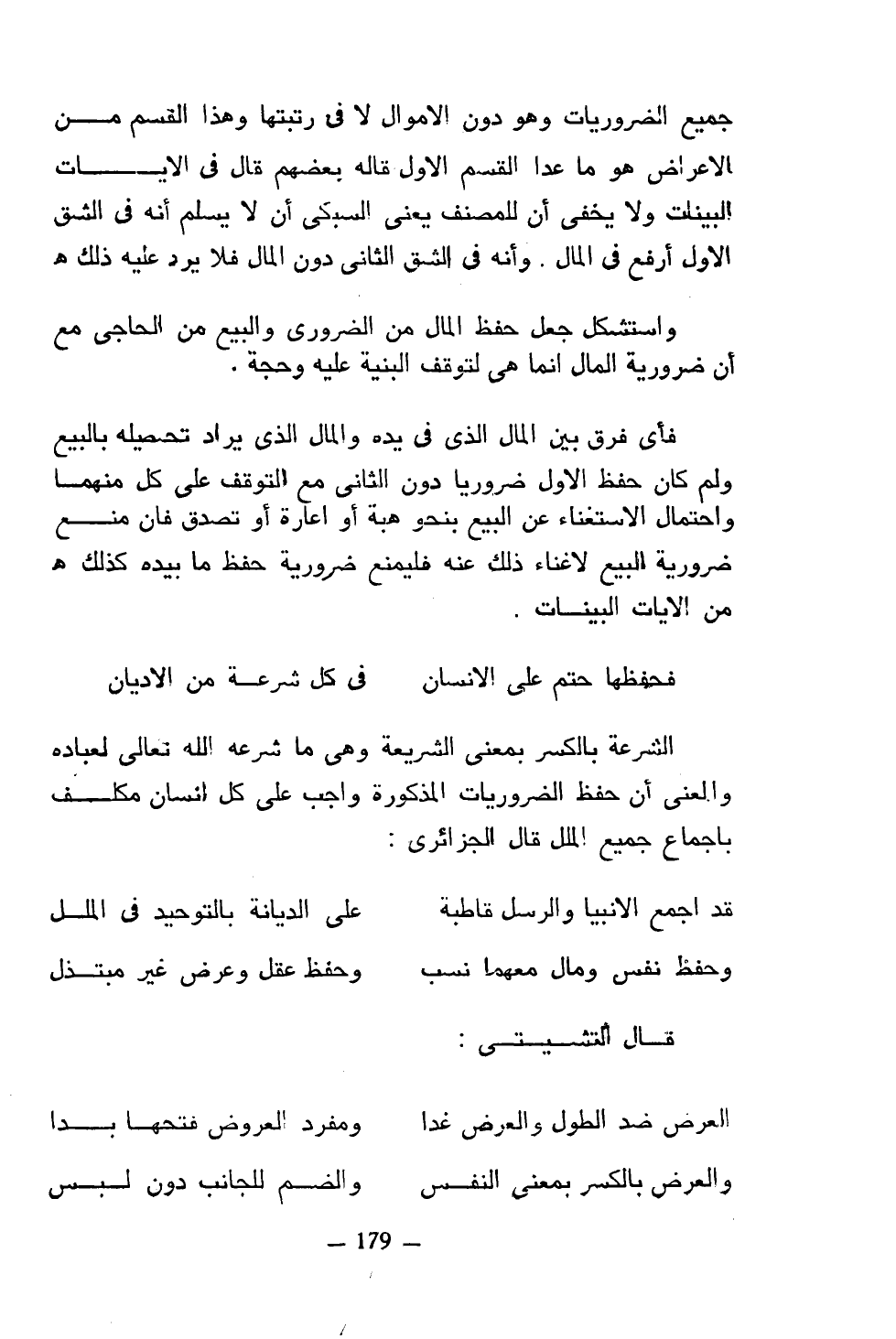 واستشكل جعل حفظ المال من الضروري والبيع من الحاجي مع أن ضرورية المال إنما هي لتوقف البنية عليه وحجة.