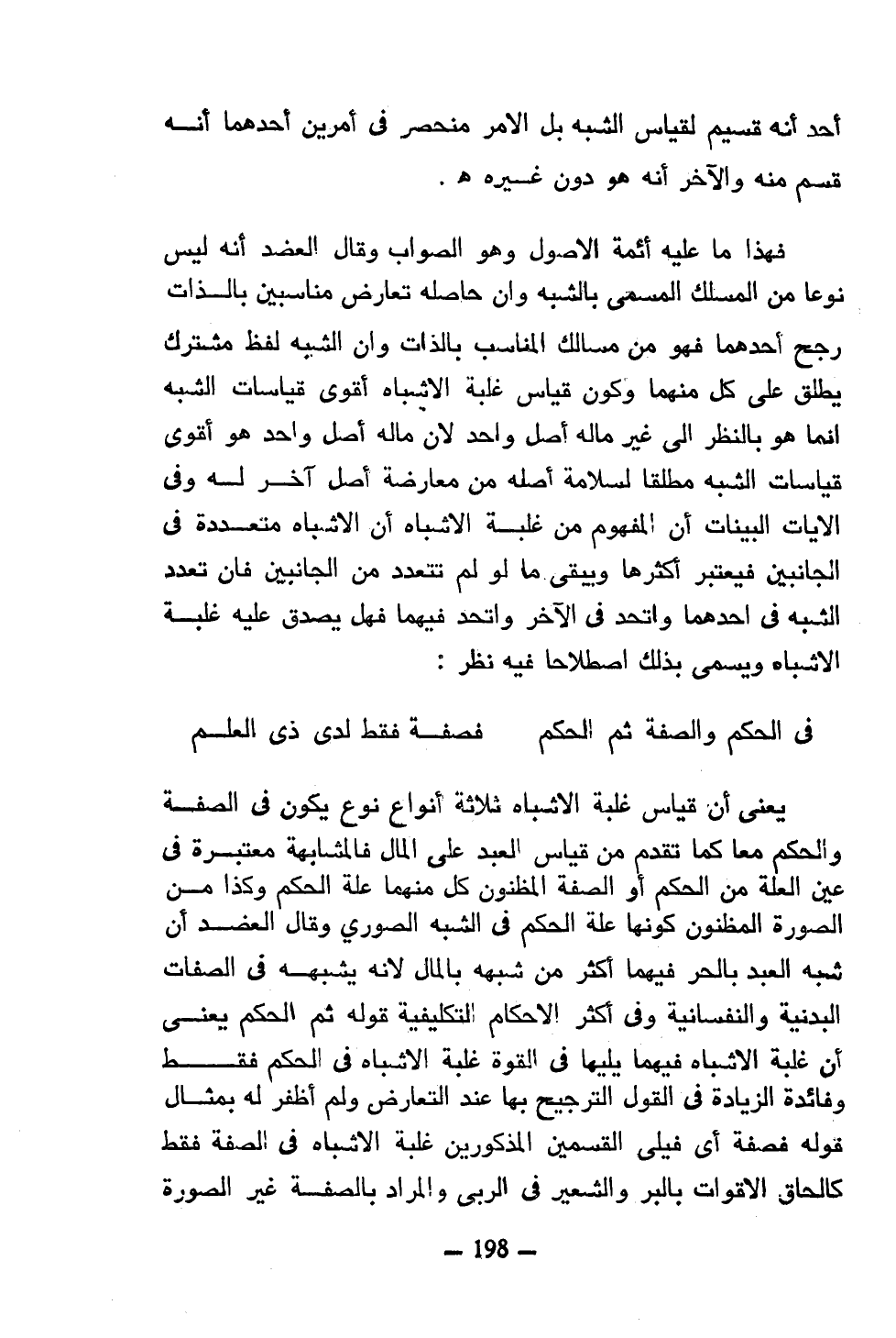 أحد أنه قسيم لقياس الشبه بل الأمر منحصر في أمرين أحدهما أنه قسم منه والآخر أنه هو دون غيره هـ.