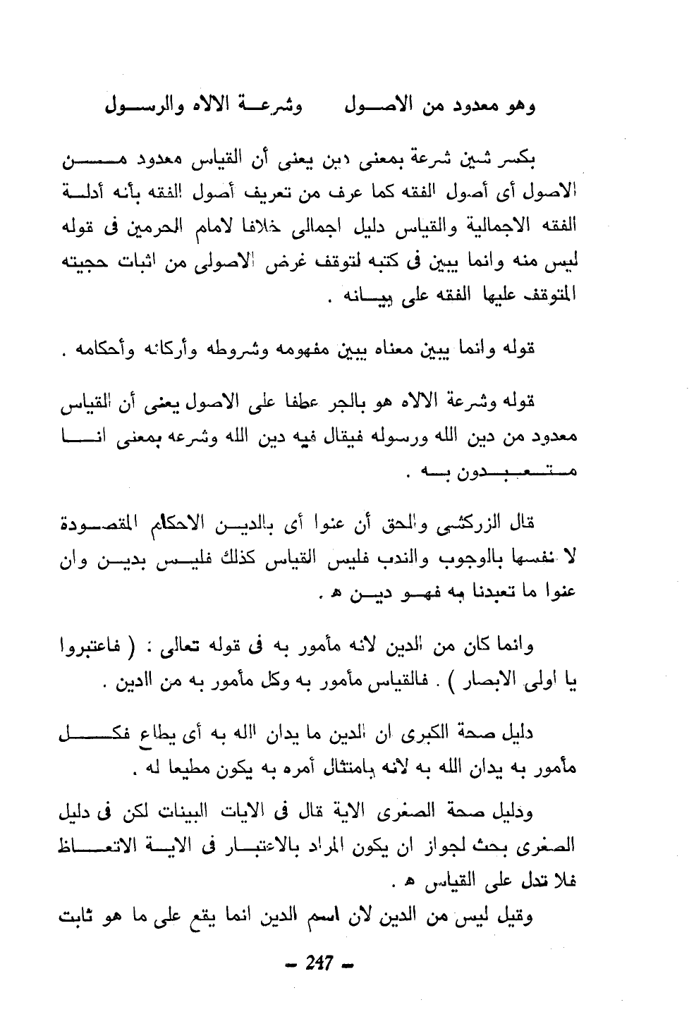 وهو معدود من الأصول ... وشرعة الالاه والرسول