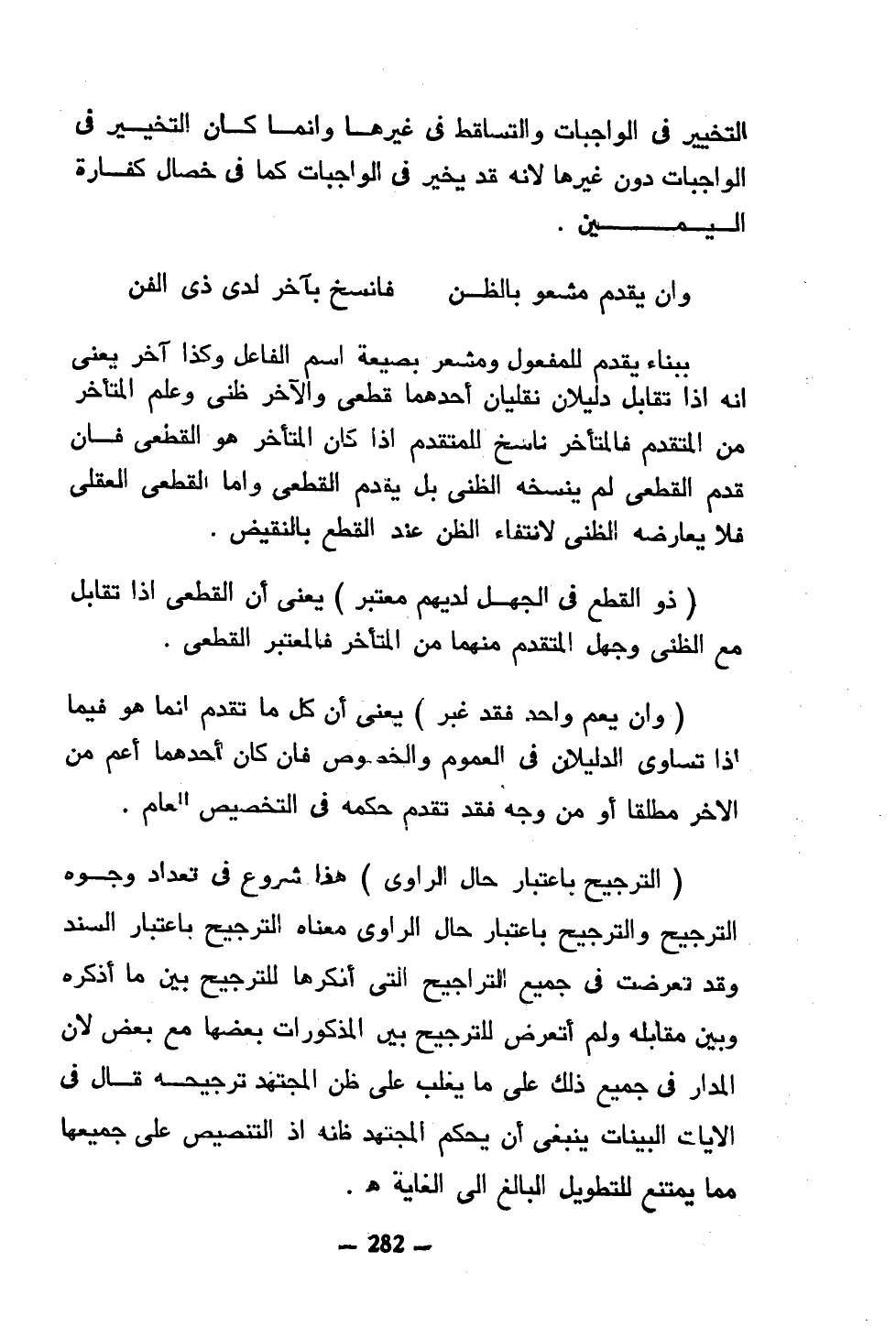 (الترجيح باعتبار حال الراوي) هذا شروع في تعدد وجوه الترجيح والترجيح باعتبار حال الراوي معناه الترجيح باعتبار السند وقد تعرضت في جميع التراجيح التي أنكرها للترجيح بين ما اذكره وبين مقابله ولم أتعرض للترجيح بين المذكورات بعضها مع بعض لآن الدار في جميع ذلك على ما يغلب على ظن المجتهد ترجيحه قال في الآيات البينات ينبغي أن يحكم المجتهد ظنه إذ التنصيص على جميعها مما يمتنع للتطويل البالغ إلى الغاية هـ.
