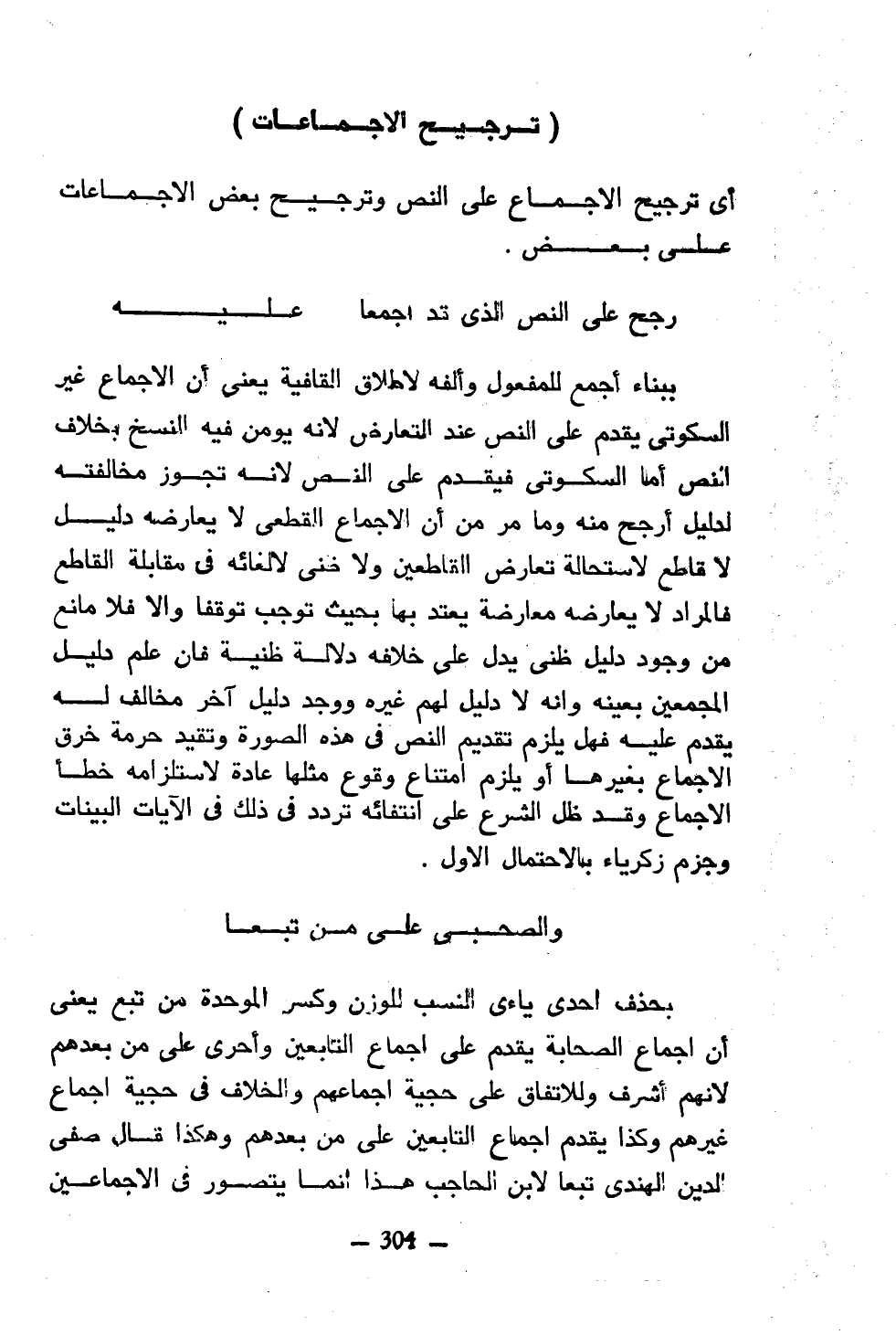 أي ترجيح الإجماع على النص وترجيح بعض الإجماعات على بعض.