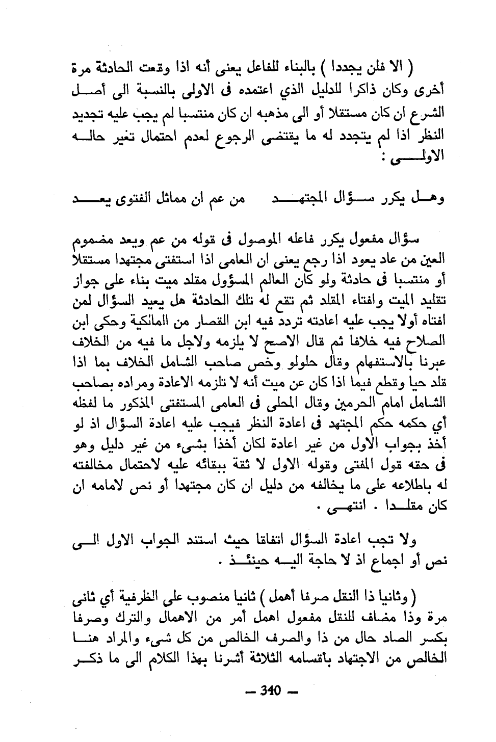 ولا تجب إعادة السؤال اتفاقًا حيث استند الجواب الأول إلى نص أو إجماع إذ لا حاجة إليه حينئذ.