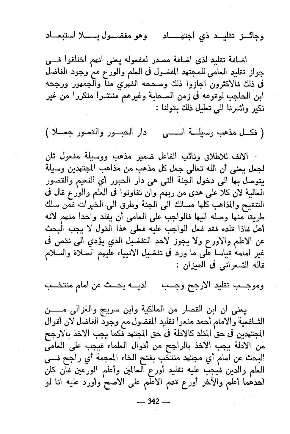 وجائز تقليد ذي اجتهاد ... وهو مفضول بلا استبعاد