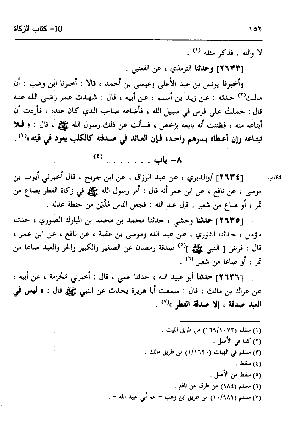 2636 - حَدَّثَنَا أَبُو عُبَيْدِ اللَّهِ، حَدَّثَنَا عَمِّي، قَالَ: أَخْبَرَنِي مَخْرَمَةُ، عَنْ أَبِيهِ، عَنْ عِرَاكِ بْنِ مَالِكٍ قَالَ:، سَمِعْتُ أَبَا هُرَيْرَةَ يُحَدِّثُ عَنِ النَّبِيِّ صَلَّى اللهُ عَلَيْهِ وَسَلَّمَ قَالَ: «§لَيْسَ فِي الْعَبْدِ صَدَقَةٌ إِلَّا صَدَقَةَ الْفِطْرِ» -[153]- حَدَّثَنِي مُضَرُ بْنُ مُحَمَّدٍ الْقُمِّيُّ، حَدَّثَنَا حَرْمَلَةُ، أَخْبَرَنَا ابْنُ وَهْبٍ، بِإِسْنَادِهِ مِثْلَهُ