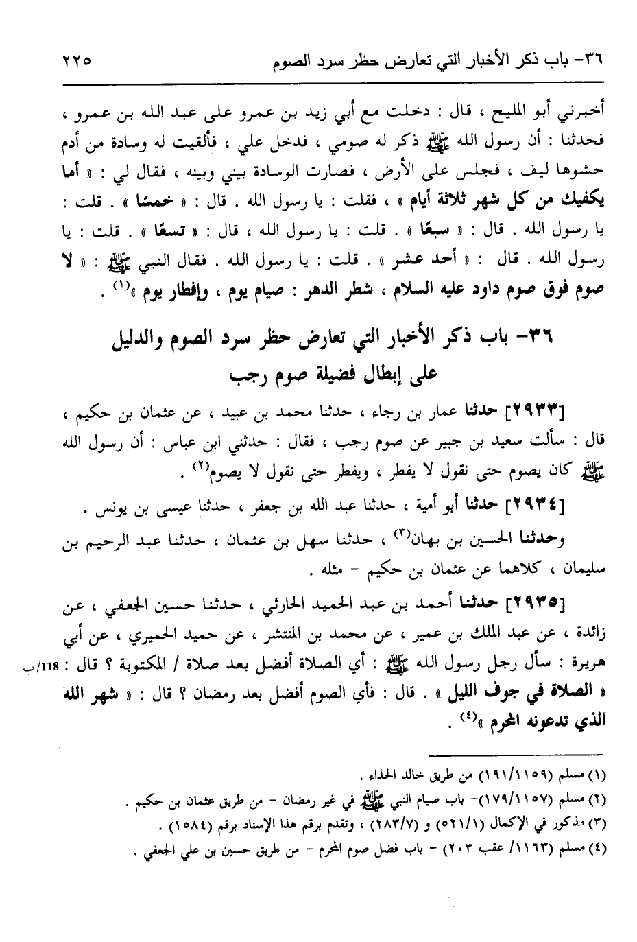 2933 - حَدَّثَنَا عَمَّارُ بْنُ رَجَاءٍ، حَدَّثَنَا مُحَمَّدُ بْنُ عُبَيْدٍ، عَنْ عُثْمَانَ بْنِ حَكِيمٍ قَالَ: سَأَلْتُ سَعِيدَ بْنَ جُبَيْرٍ عَنْ صَوْمِ رَجَبٍ، فَقَالَ:، حَدَّثَنِي ابْنُ عَبَّاسٍ: «أَنَّ رَسُولَ اللَّهِ صَلَّى اللهُ عَلَيْهِ وَسَلَّمَ كَانَ §يَصُومُ حَتَّى نَقُولَ لَا يُفْطِرُ، وَيُفْطِرُ حَتَّى نَقُولَ لَا يَصُومُ»