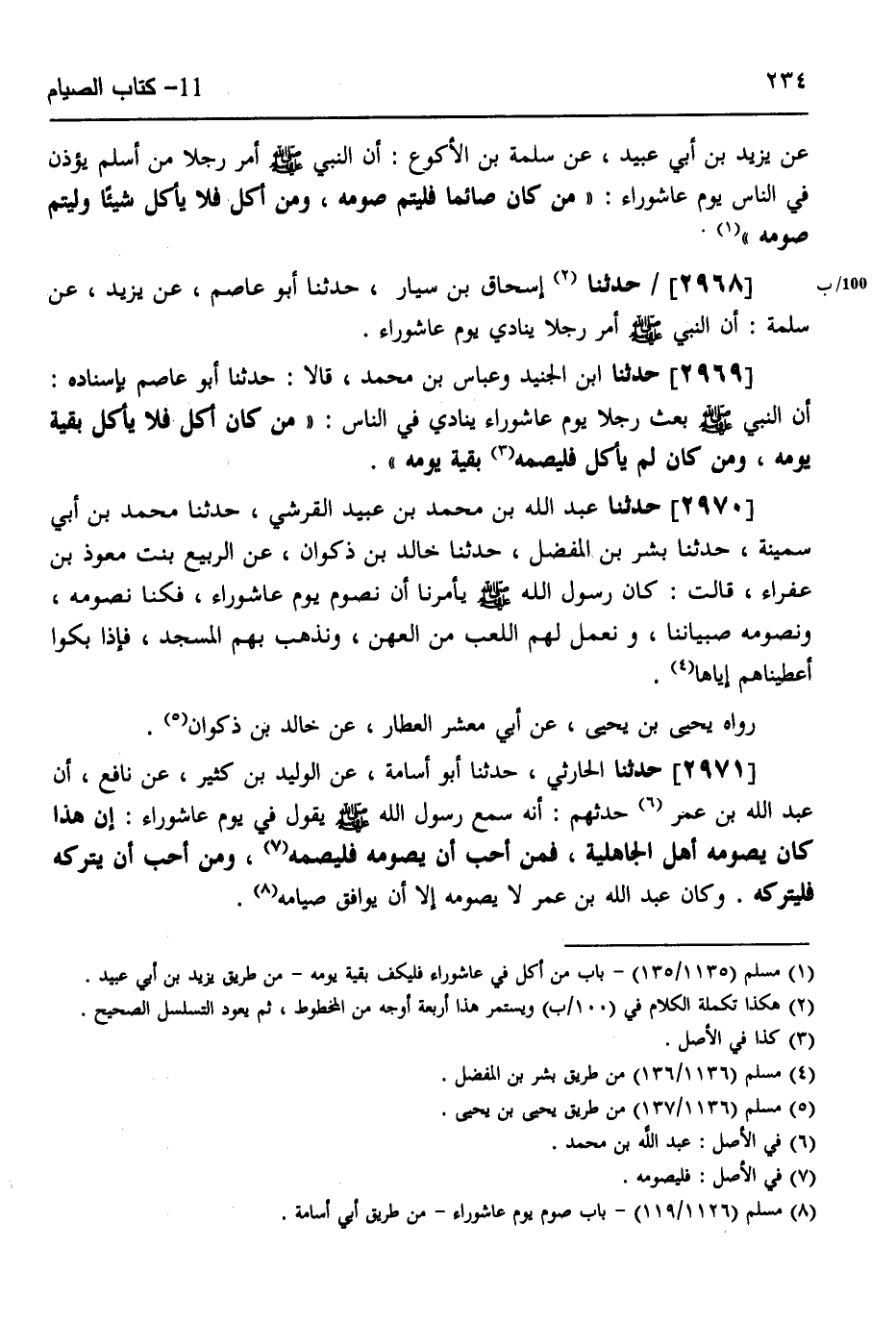 2969 - حَدَّثَنَا ابْنُ الْجُنَيْدِ، وَعَبَّاسُ بْنُ مُحَمَّدٍ، قَالَا: حَدَّثَنَا أَبُو عَاصِمٍ، بِإِسْنَادِهِ: أَنَّ النَّبِيَّ صَلَّى اللهُ عَلَيْهِ وَسَلَّمَ بَعَثَ رَجُلًا يَوْمَ عَاشُورَاءَ يُنَادِي فِي النَّاسِ: «§مَنْ كَانَ أَكَلَ فَلَا يَأْكُلْ بَقِيَّةَ يَوْمِهِ، وَمَنْ كَانَ لَمْ يَأْكُلْ فَلْيَصُمْهُ بَقِيَّةَ يَوْمِهِ»