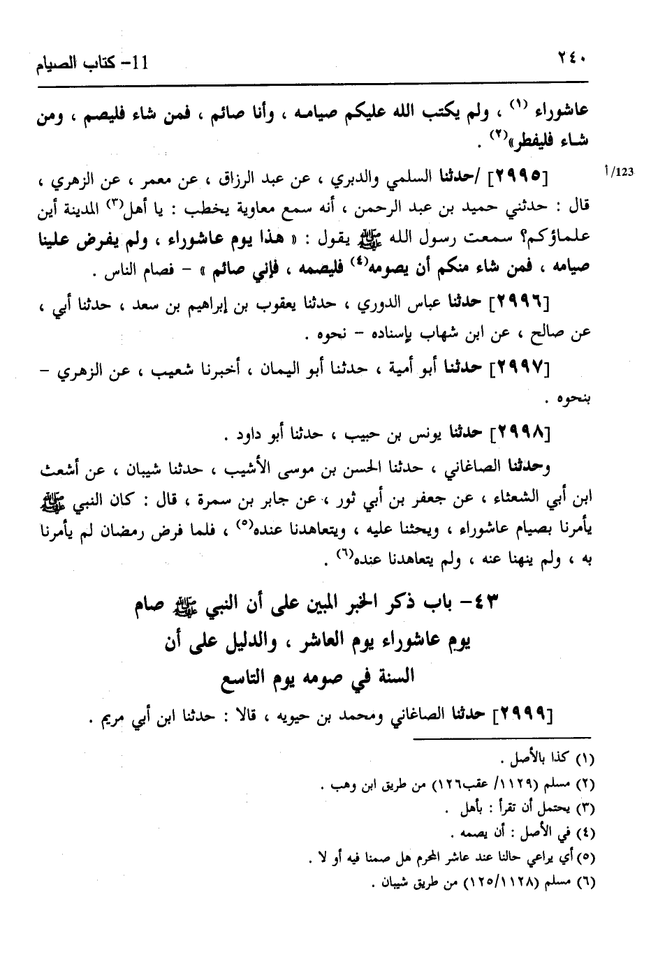 §بَابُ ذِكْرِ الْخَبَرِ الْمُبَيِّنِ عَلَى أَنَّ النَّبِيَّ صَلَّى اللهُ عَلَيْهِ وَسَلَّمَ صَامَ يَوْمَ عَاشُورَاءَ يَوْمَ الْعَاشِرِ، وَالدَّلِيلِ عَلَى أَنَّ السُّنَّةَ فِي صَوْمِهِ؛ يَوْمُ التَّاسِعِ
