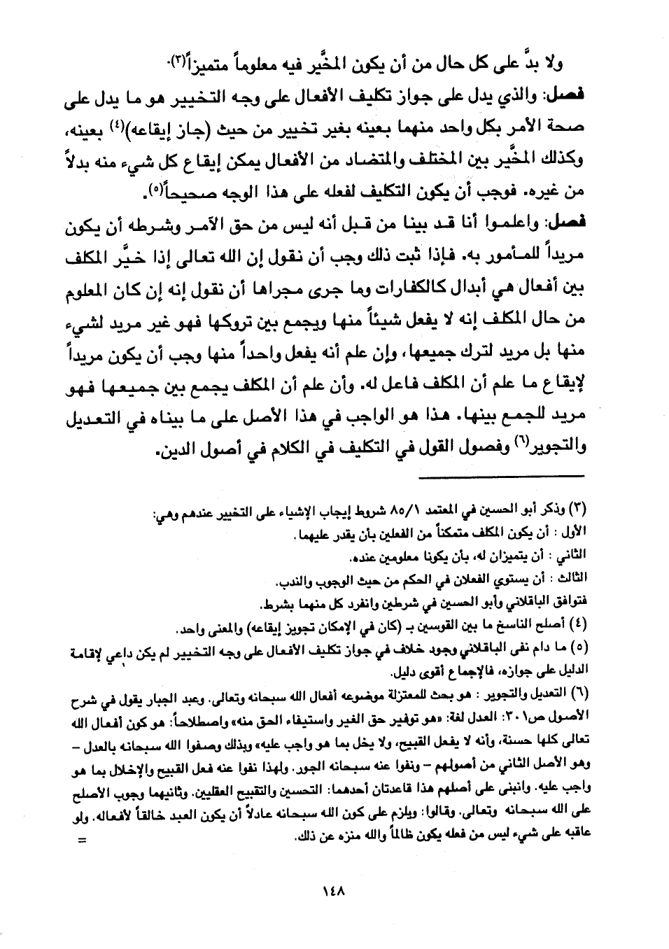 فصل: والذي يدل على جواز تكليف الأفعال على وجه التخيير هو ما يدل على صحة الأمر بكل واحد منهما بعينه بغير تخيير من حيث (جاز إيقاعه) بعينه، وكذلك المخير بين المختلف والمتضاد من الأفعال يمكن إيقاع كل شيء منه بدلا من غيره. فوجب أن يكون التكليف لفعله على هذا الوجه صحيحا.