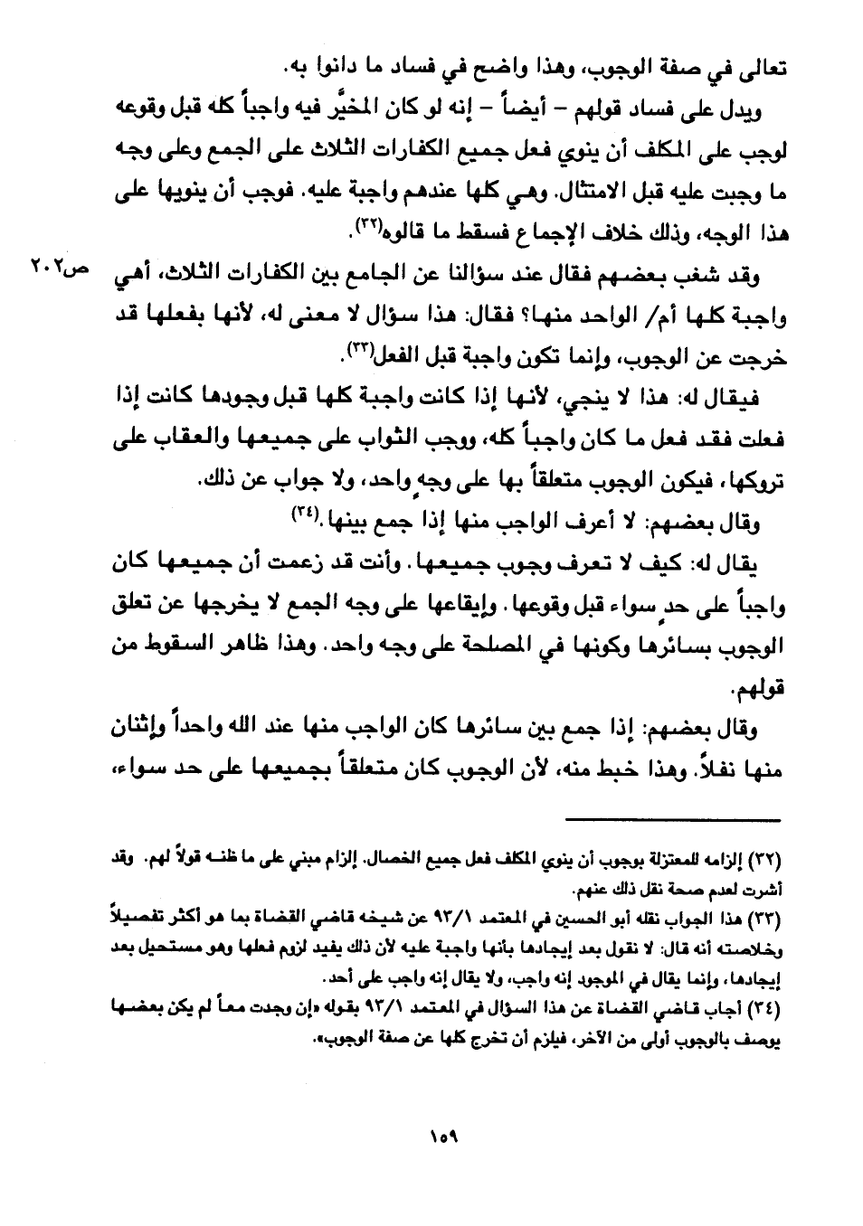 وقد شغب بعضهم فقال عند سؤالنا عن الجامع بين الكفارات الثلاث، أهي واجبة كلها أم /ص ٢٠٢ الواحد منها؟ فقال: هذا سؤال لا معنى له، لأنه بفعلها قد خرجت عن الوجوب، وإنما تكون واجبة قبل الفعل.
