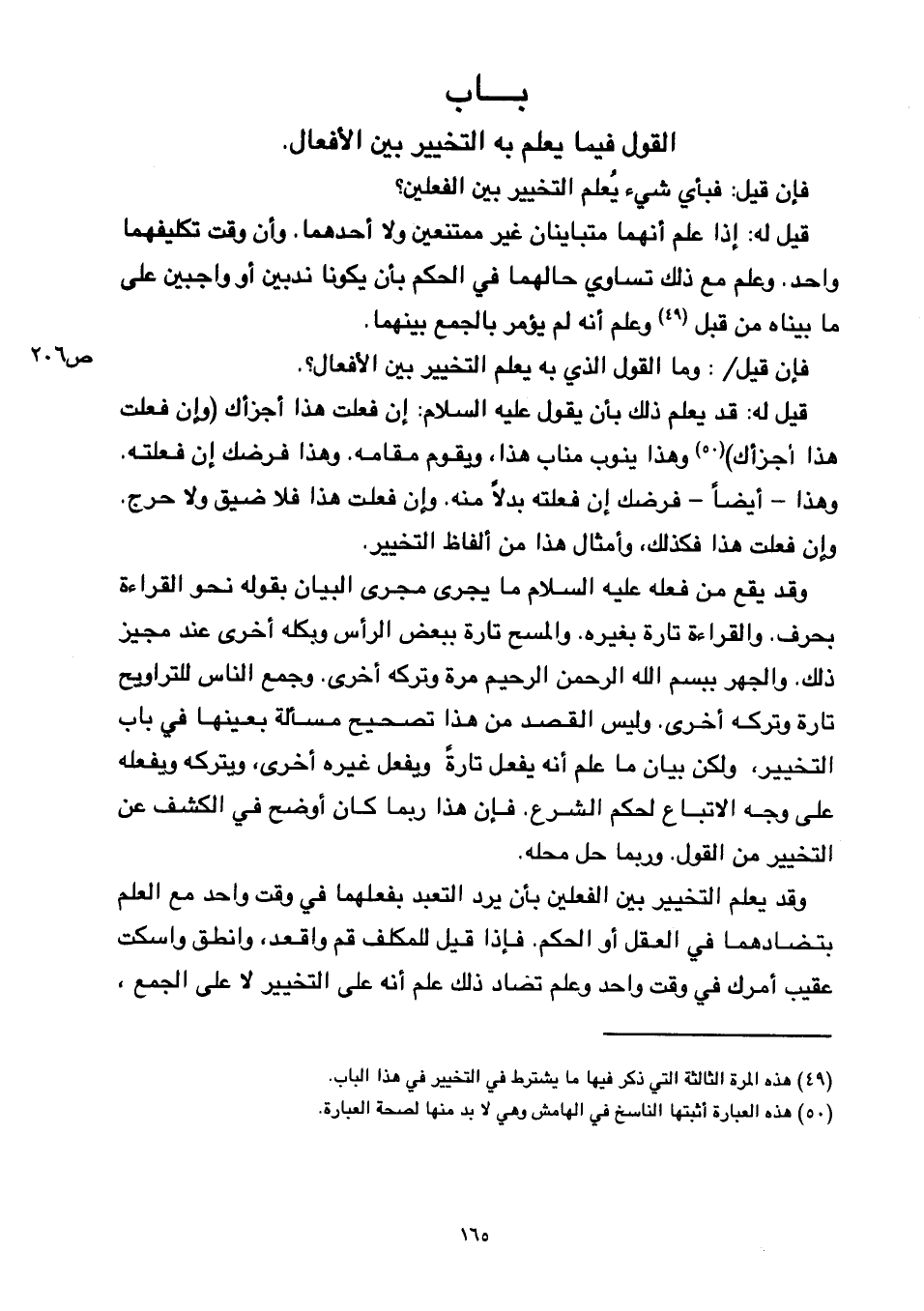 فإن قيل ⦗٢٠٦⦘ وما القول الذي به يعلم التخيير بين الأفعال؟