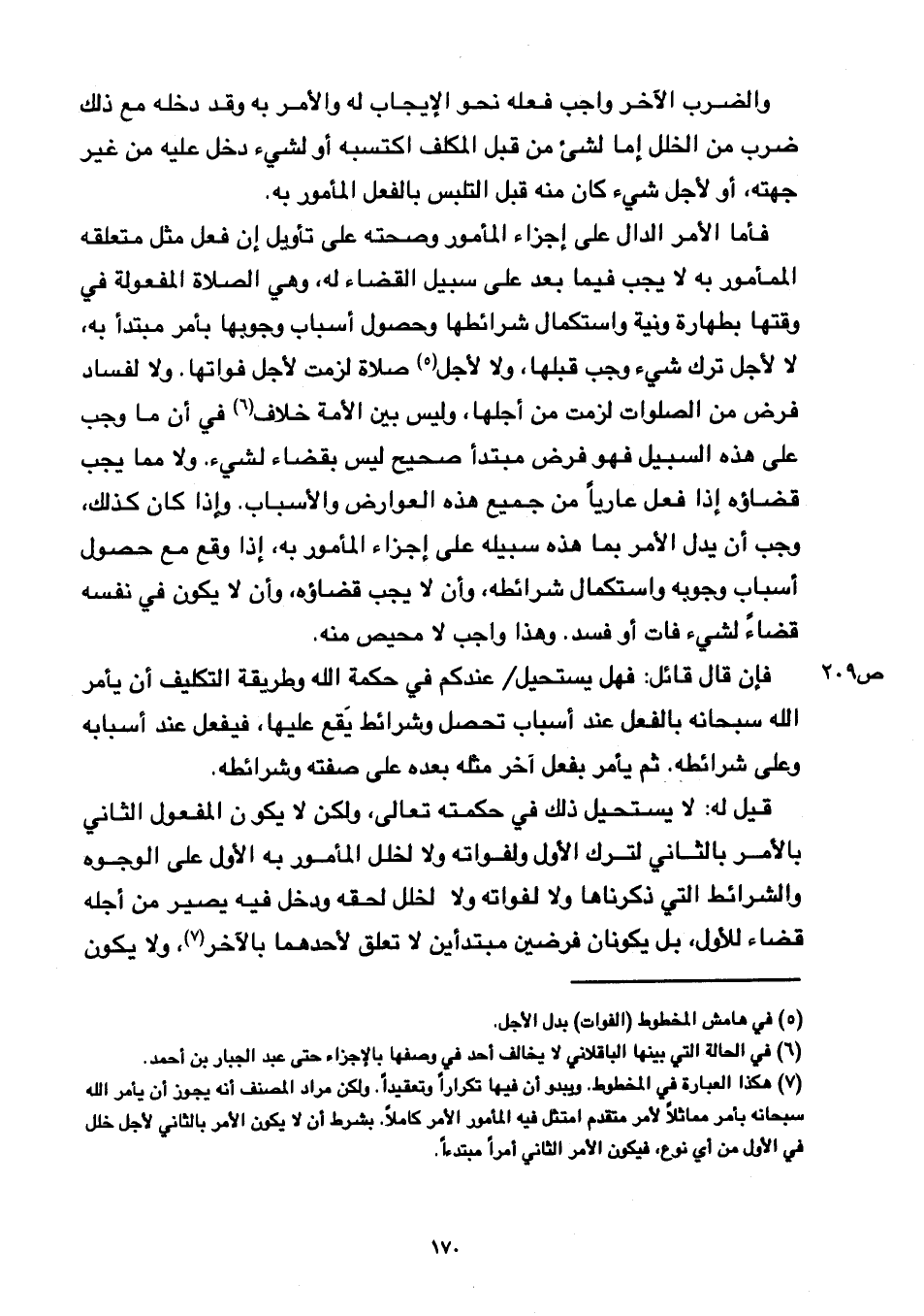 فإن قال قائل: فهل يستحيل ⦗٢٠٩⦘ عندكم في حكمة الله وطريقة التكليف أن يأمر الله سبحانه بالفعل عند أسباب تحصل وشرائط يقع عليها, فيفعل عند أسبابه وعلى شرائطه. ثم يأمر بفعل آخر مثله بعده على صفته وشرائطه.