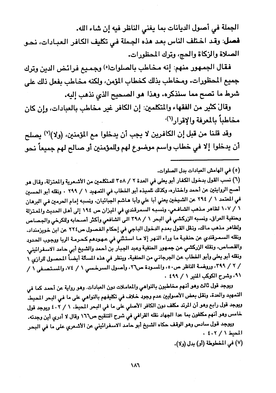 فصل: وقد اختلف الناس بعد هذه الجملة في تكليف الكافر العبادات, نحو الصلاة والزكاة والحج، وترك المحظورات.