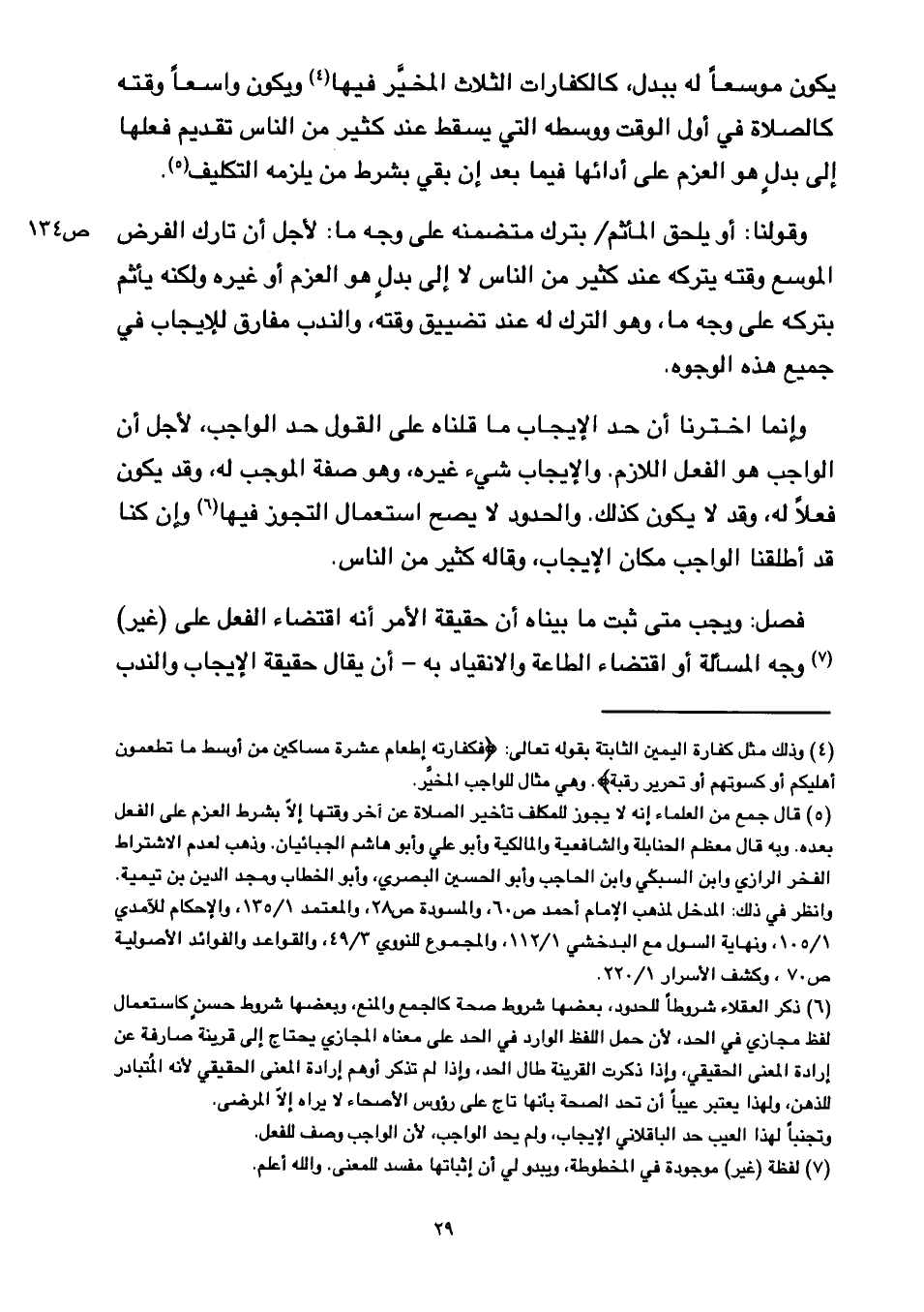 وقولنا: أو يلحق المأثم ⦗١٣٤⦘ بترك متضمنه على وجه ما: لأجل أن تارك الفرض الموسع وقته بتركه عند كثير من الناس لا إلى بدل هو العزم أو غيره ولكنه يأثم بتركه على وجه ما, وهو الترك له عند تضييق وقته, والندب مفارق للإيجاب في جميع هذه الوجوه.