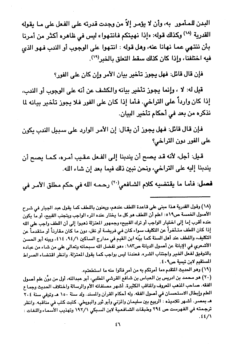 قيل له: لا, وإنما يجوز تأخير بيانه والكشف عن أنه على الوجوب أو الندب, إذا كان واردًا على التراخي, فأما إذا كان على الفور فلا يجوز تأخير بيانه لما نذكره من بعد في أحكام تأخير البيان.
