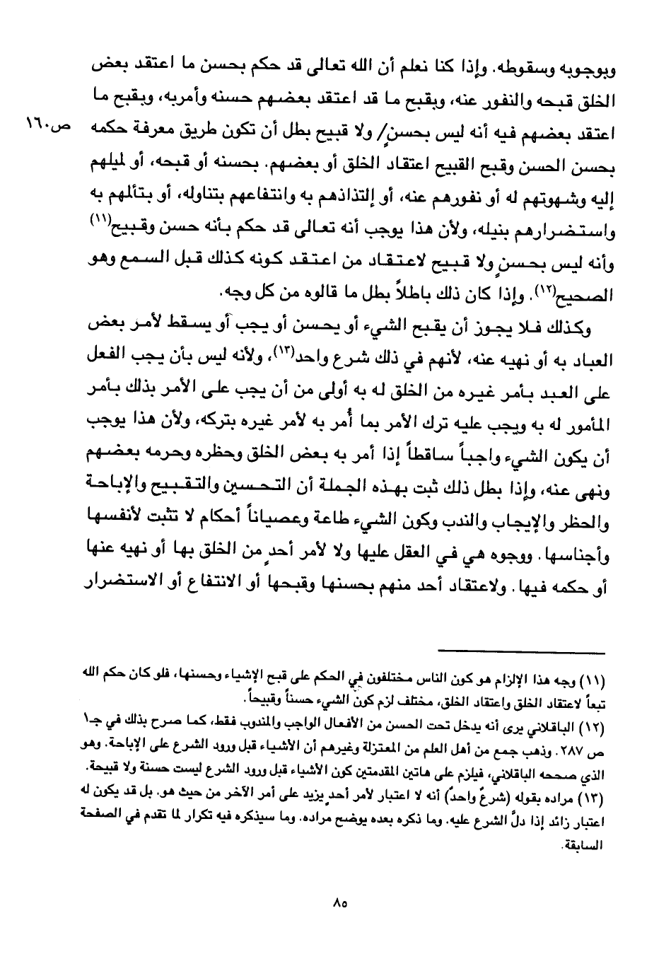 وكذلك فلا يجوز أن يقبح الشيء أو يحسن أو يجب أن يسقط لأمر بعض العباد به أو نهيه عنه, لأنهم في ذلك شرع واحد, ولأنه ليس بأن يجب الفعل على العبد بأمر غيره من الخلق له به أولى من أن يجب على الأمر بذلك بأمر المأمور له به ويجب عليه ترك الأمر بما أمر به لأمر غيره بتركه, ولأن هذا يوجب أن يكون الشيء واجبًا ساقطًا إذا أمر به بعض الخلق وحظره وحرمه بعضهم ونهى عنه, وإذا بطل ذلك ثبت بهذه الجملة أن التحسين والتقبيح والإباحة والحظر والإيجاب والندب وكون الشيء طاعة وعصيانًا أحكام لا تثبت لأنفسها وأجناسها, ووجوه هي في العقل عليها ولا لأمر أحد من الخلق بها أو نهيه عنها أو حكمه فيها, ولاعتقاد أحد منهم بحسنها وقبحها أو الانتفاع أو الاستضرار