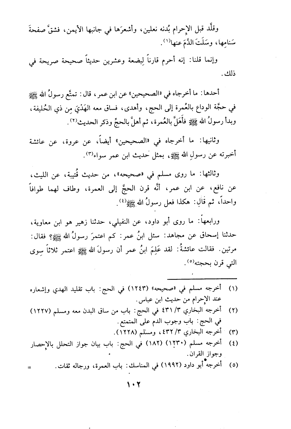 ( «وَقَلَّدَ قَبْلَ الْإِحْرَامِ بُدُنَهُ نَعْلَيْنِ، وَأَشْعَرَهَا فِي جَانِبِهَا الْأَيْمَنِ، فَشَقَّ صَفْحَةَ سَنَامِهَا، وَسَلَتَ الدَّمَ عَنْهَا» ) .