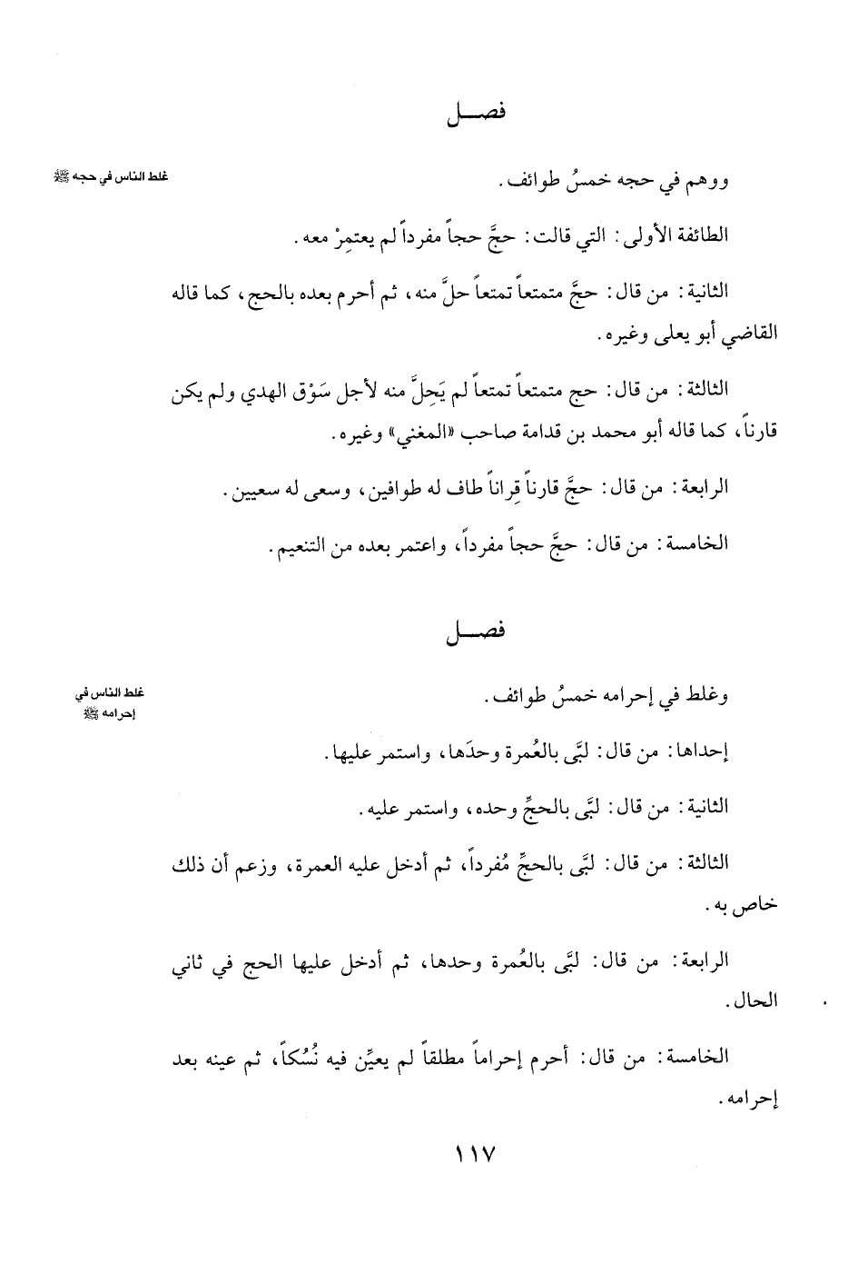 وَوَهِمَ فِي حَجِّهِ خَمْسُ طَوَائِفَ.